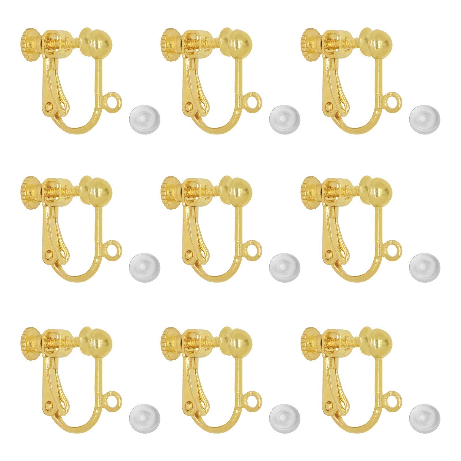 イヤリングパーツ MUNCVY DIY ネジバネ式 丸皿タイプ 10ペア20個 シリコンカバー付き ゴールド ネジ調整クリップ ノンホール ピアス ハンドメイド 基礎金具 材料 素材