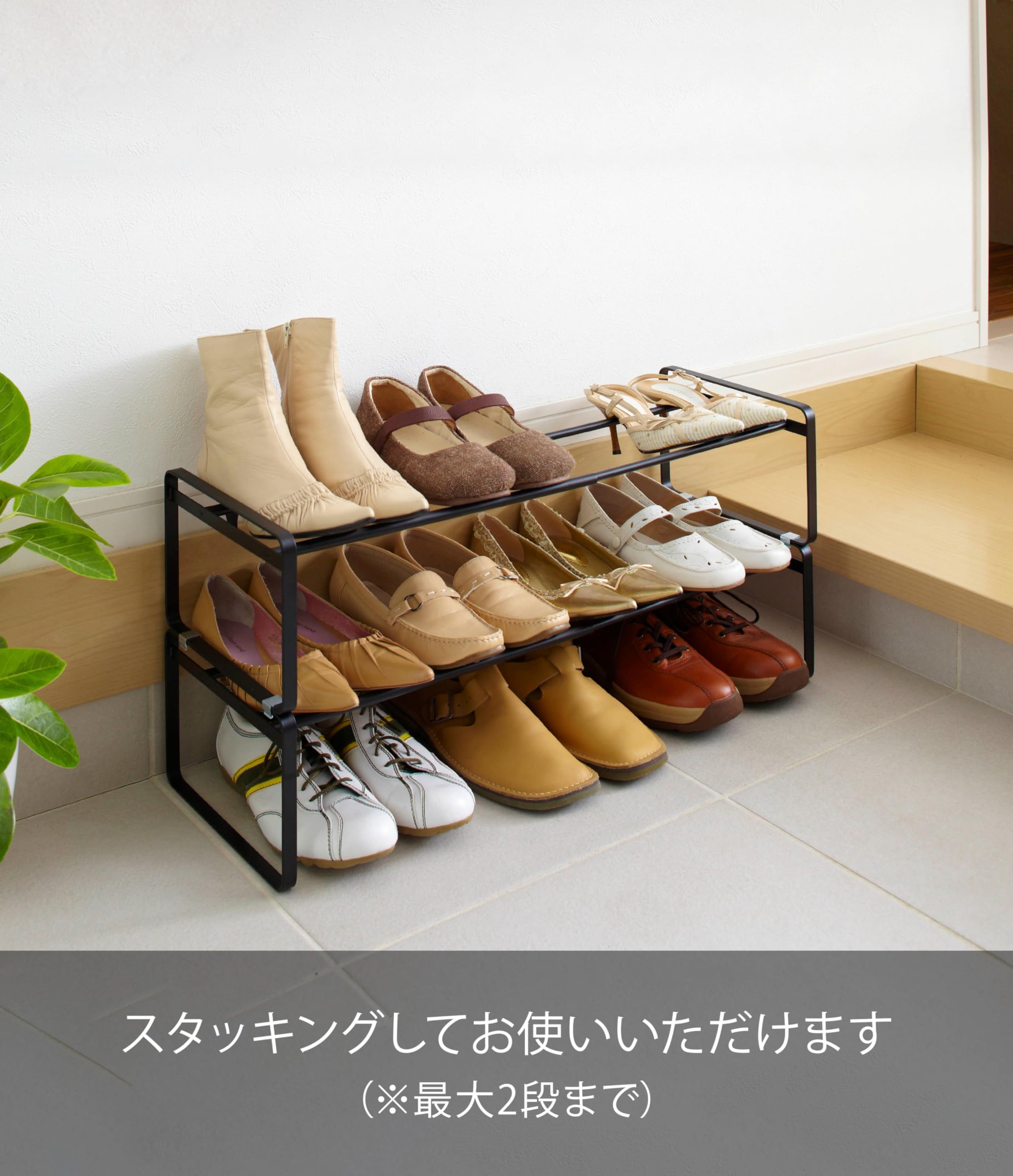 山崎実業(Yamazaki) 伸縮 シューズラック ブラック 約W41~70×D25×H17.5cm フレーム frame 下駄箱下にも収まる 靴収納 7210