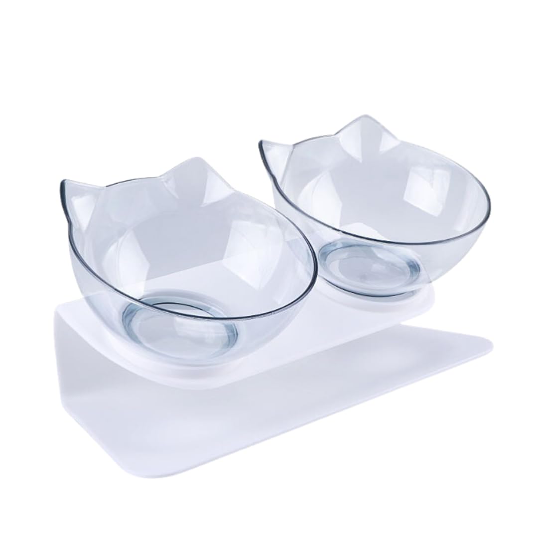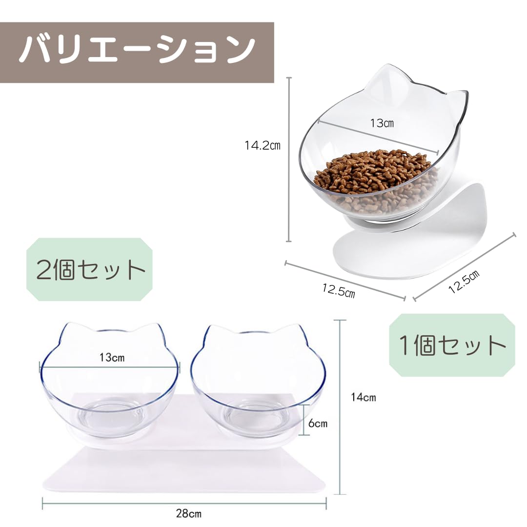 I'm so happy 猫 餌入れ 透明 餌台 皿 食べやすい 斜め ごはん台 水飲み皿 吐き戻し軽減 食器 (2個セット)