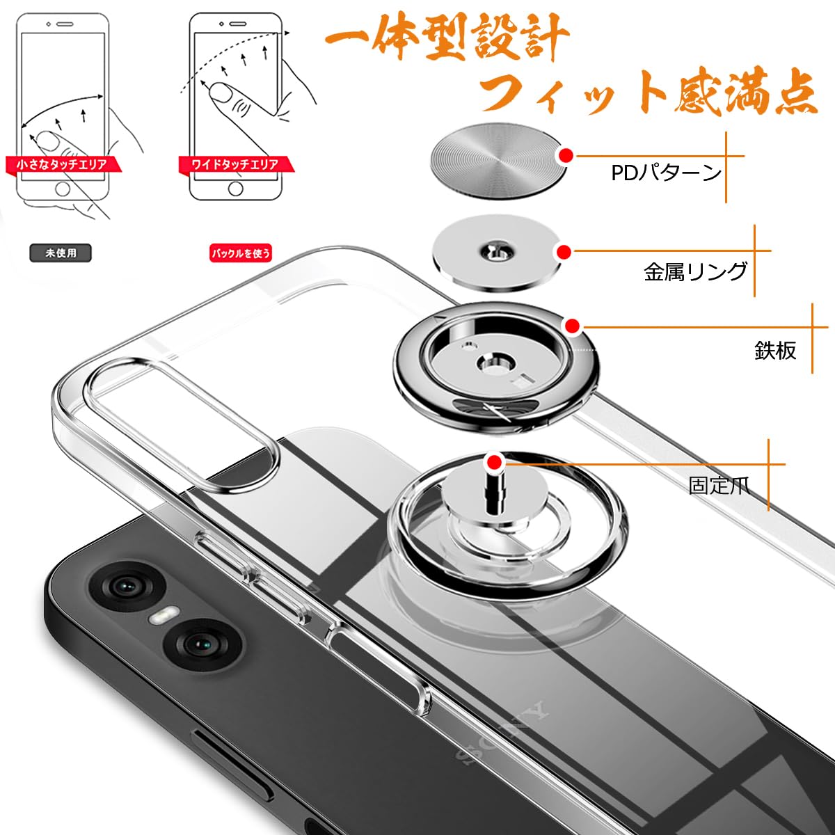 【特価商品】Xperia 10 VI ケース リング 透明 SO-52E カバー SOG14 スマホケース クリア tpu 耐衝撃 滑り止め 薄型 スタンド機能 車載ホルダー 指紋防止 軽量 衝撃吸収 Sony エクスペリア10VI XQ-ES44 ケース (クリア)