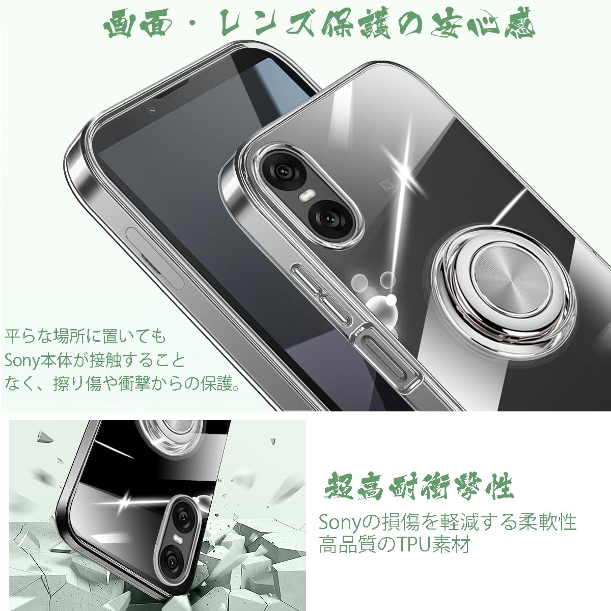 Xperia 10 VI ケース リング 透明 SO-52E カバー SOG14 スマホケース クリア tpu 耐衝撃 滑り止め 薄型 スタンド機能 車載ホルダー 指紋防止 軽量 衝撃吸収 Sony エクスペリア10VI XQ-ES44 ケース (クリア)