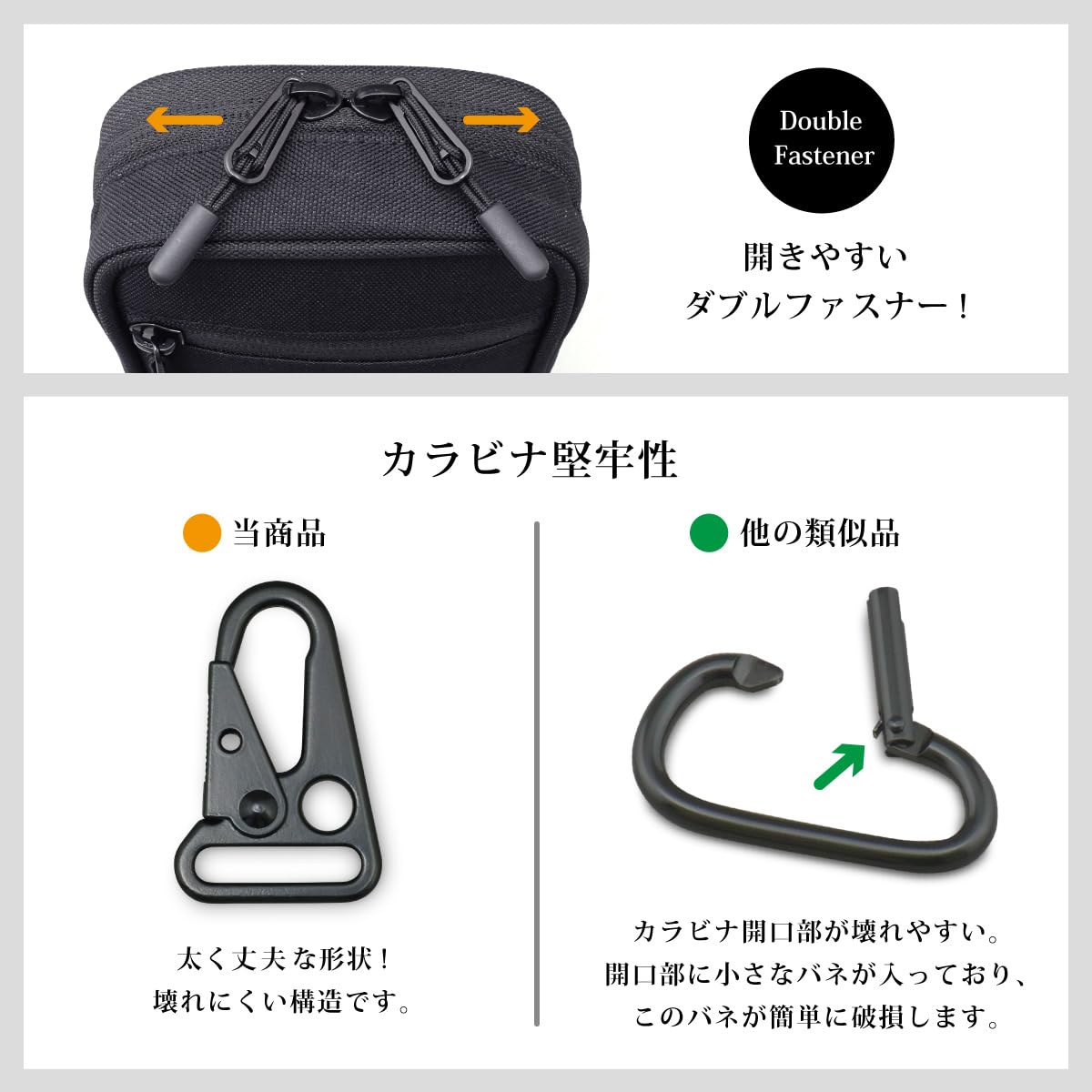 ◆撥水強化ポリエステル生地を使用し、破れやすい箇所は補強テープなどで強化している丈夫なスマホポーチです。