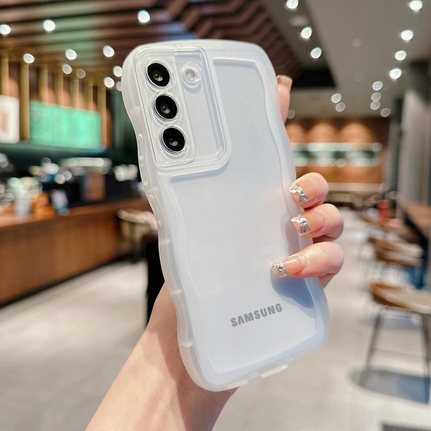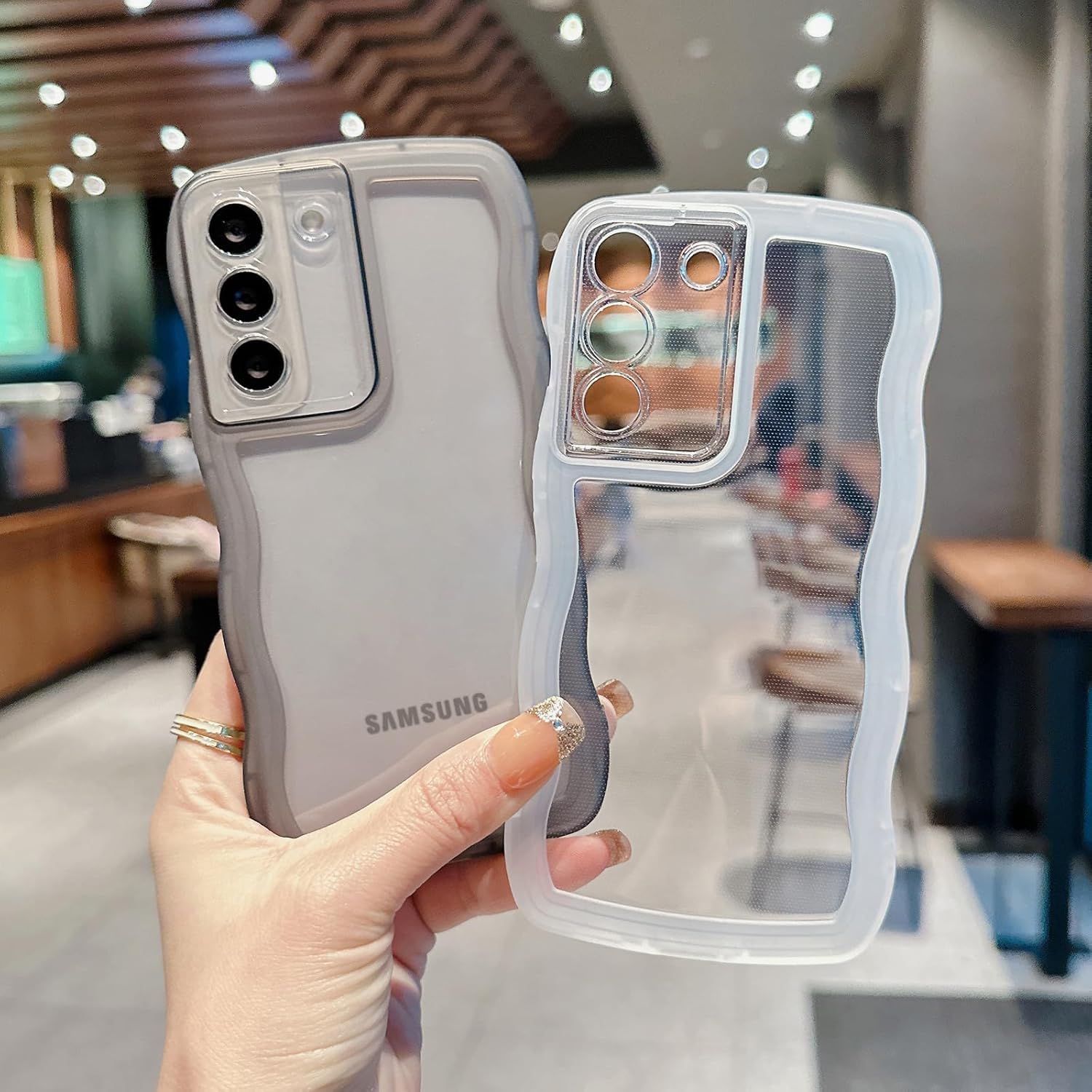 透明感 ? フィット感:背面は透明度ポリカーボネートの素材で、Galaxy A53本来の美しさと高級感をそのままに映り出し、あなたの携帯電話は、より美しさとファッションに見えるようにします。サイド周りのウェーブ部分は柔らかな素材のTPU素材で、デザインが手にフィットして持ちやすく、可愛い、流行りの韓国デザインです