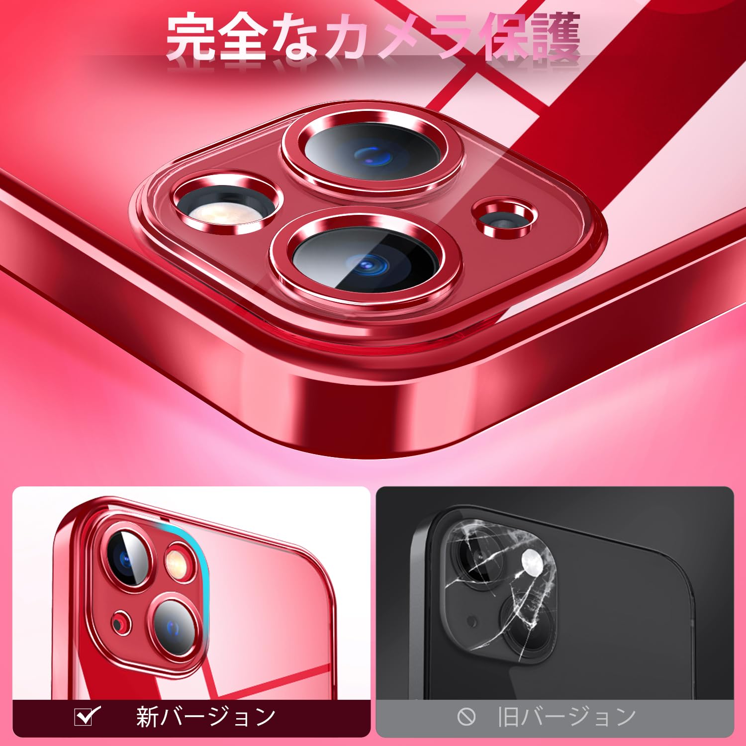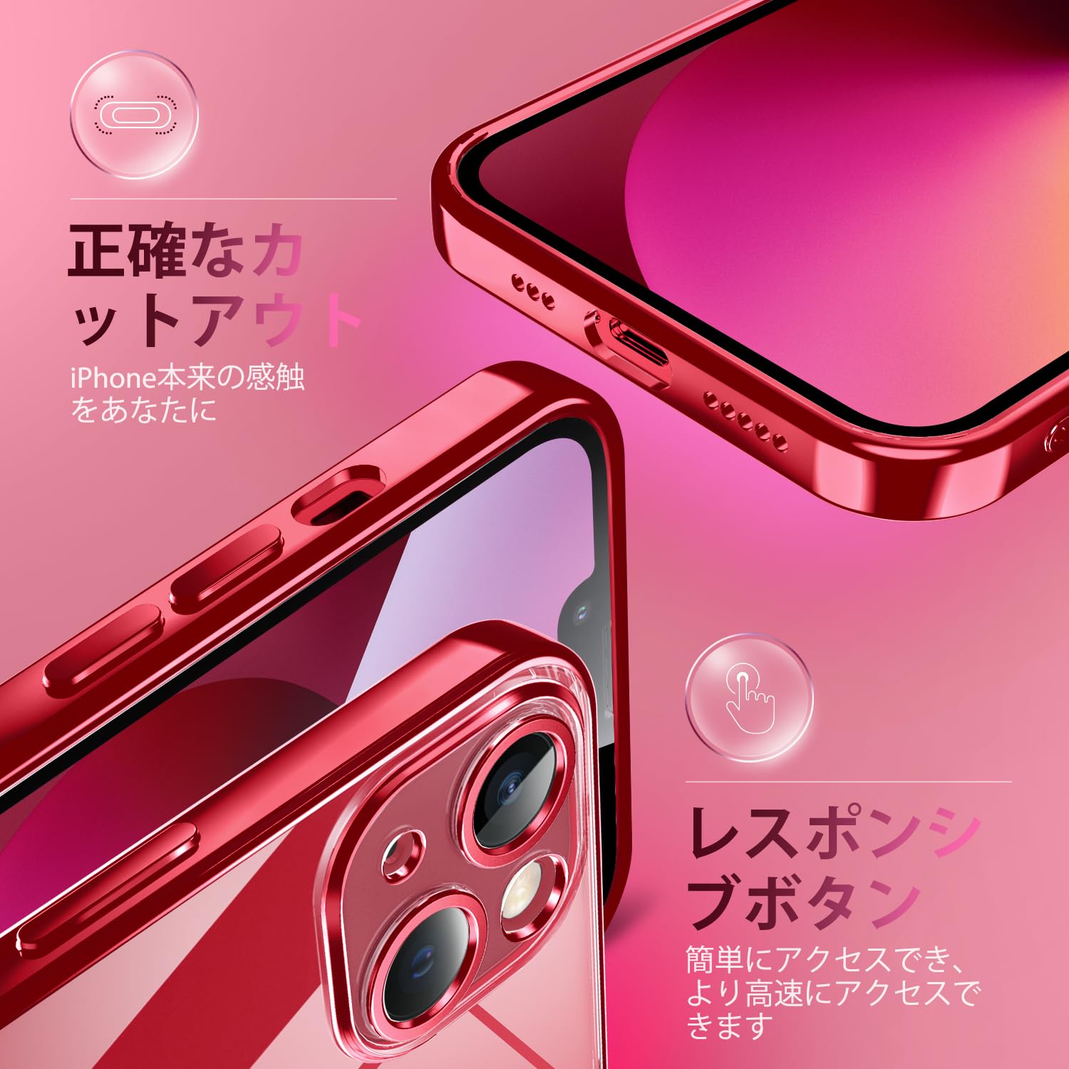 【数量限定】Supdeal クリスタル クリアな透明電話ケース対応iPhone 13,[カメラレンズ保護][シリコン高精細透明][黄変しない][極薄でソフトな素肌感覚][耐衝撃]アイフォン 13 スマホカバー衝突防止エアバッグ付き,6.1インチ(レッド)