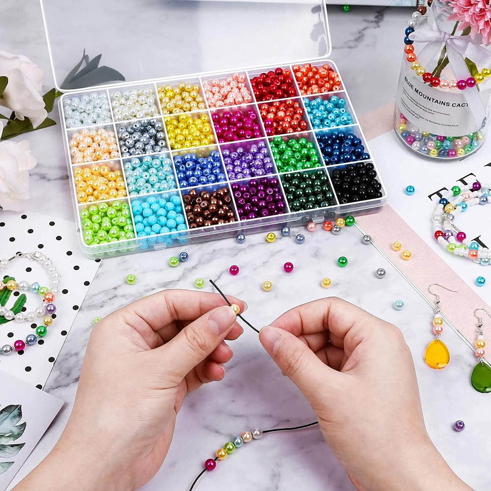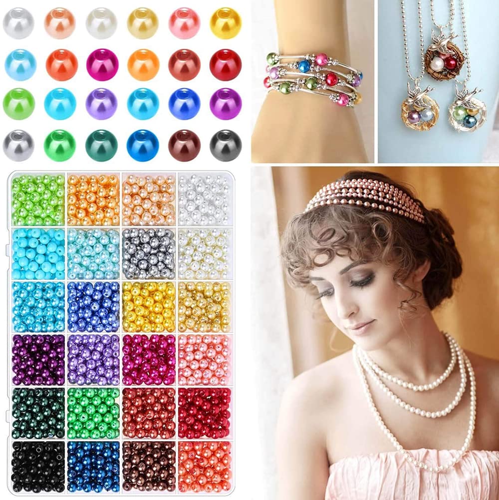 YFFSFDC ガラスビーズ 24色パールビーズ 両穴しカラーパール 糸通しビーズ アクセサリー 手作りアクササリー DIY DIY用 手芸 手芸材料 手作り ミックス 混合色 24色 6mm 約1680個