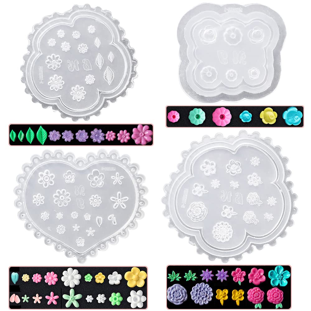 サムコス シリコンモールド 4個セット リーフ 花 立体 ネイル 素材 ジェルネイル DIY ハンドメイド ネイルツール 樹脂 工芸品 装飾 レジン 抜き型 再利用可能