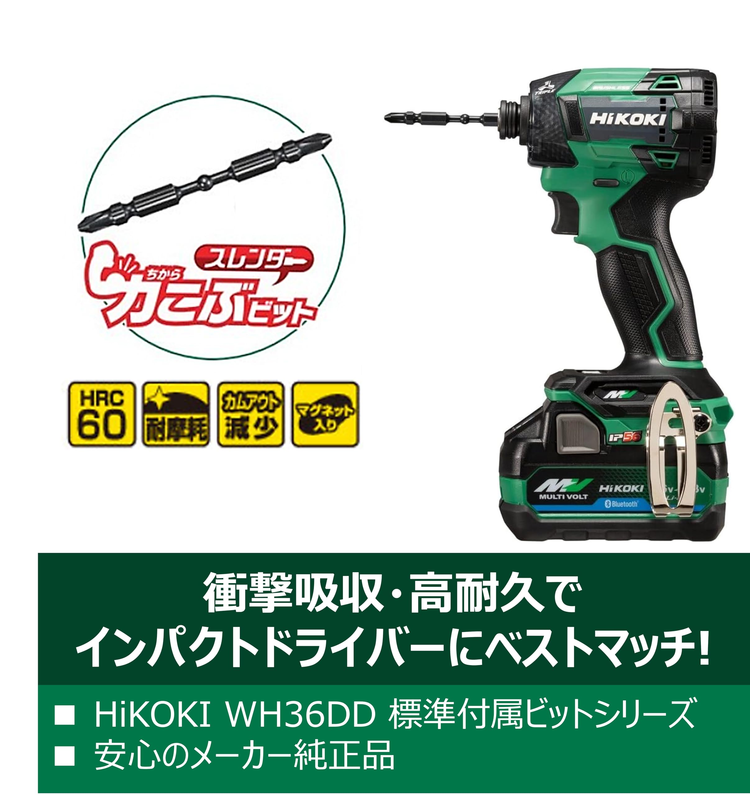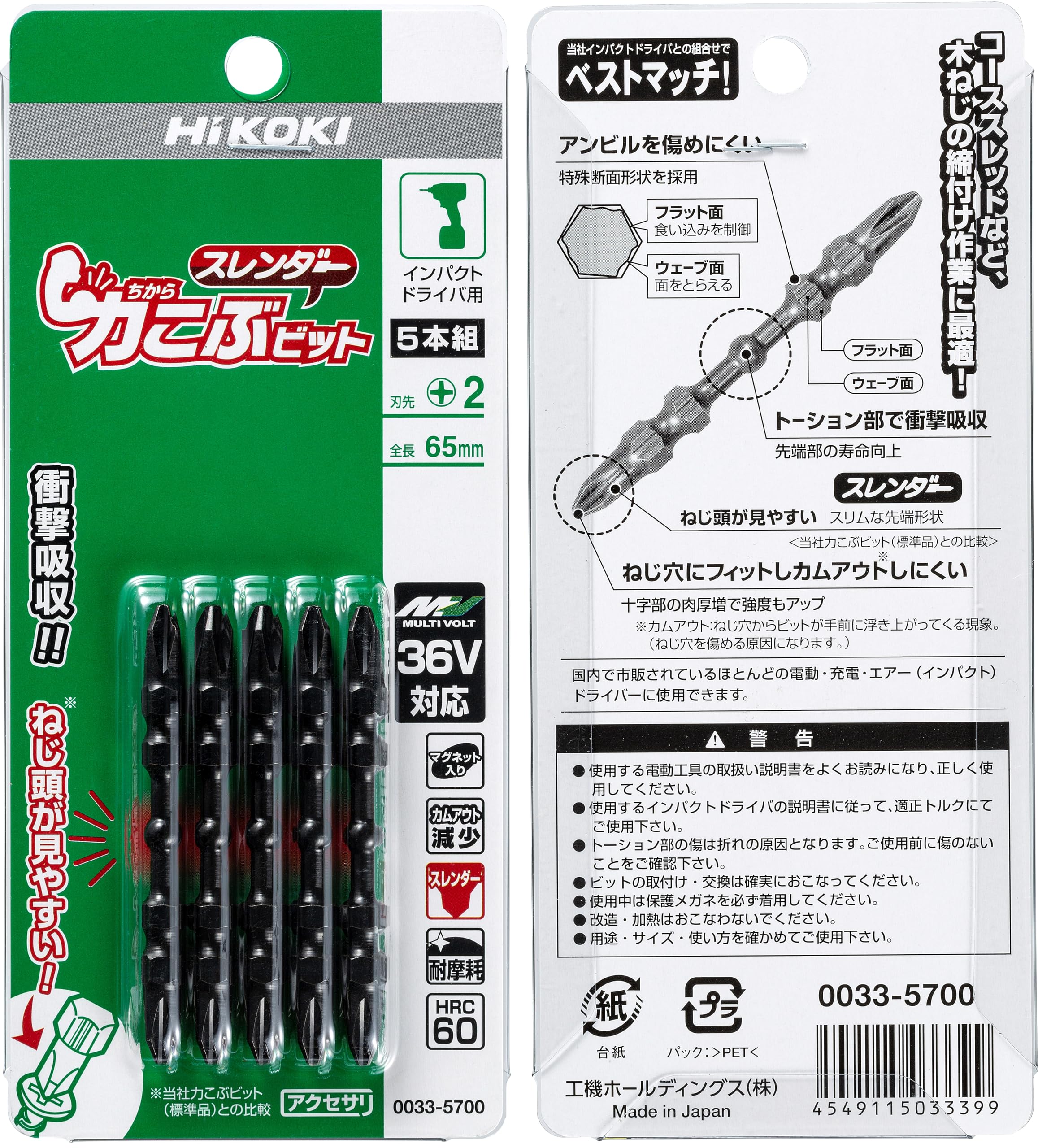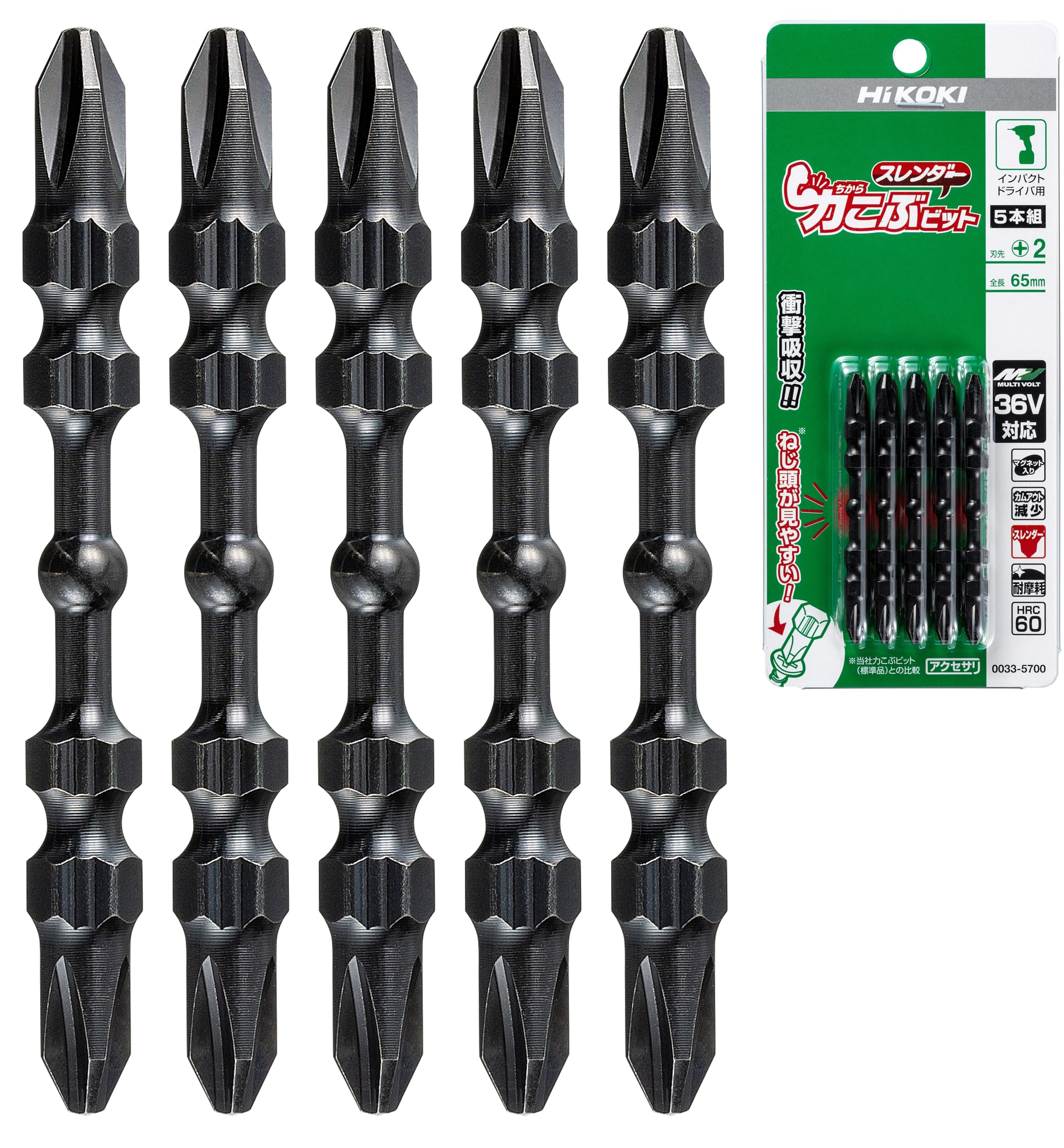 【数量限定】HiKOKI(ハイコーキ) トーションビット 力こぶ スレンダー No.2 全長65mm 六角軸二面幅6.35mm 5本入 インパクトドライバー用 0033-5700