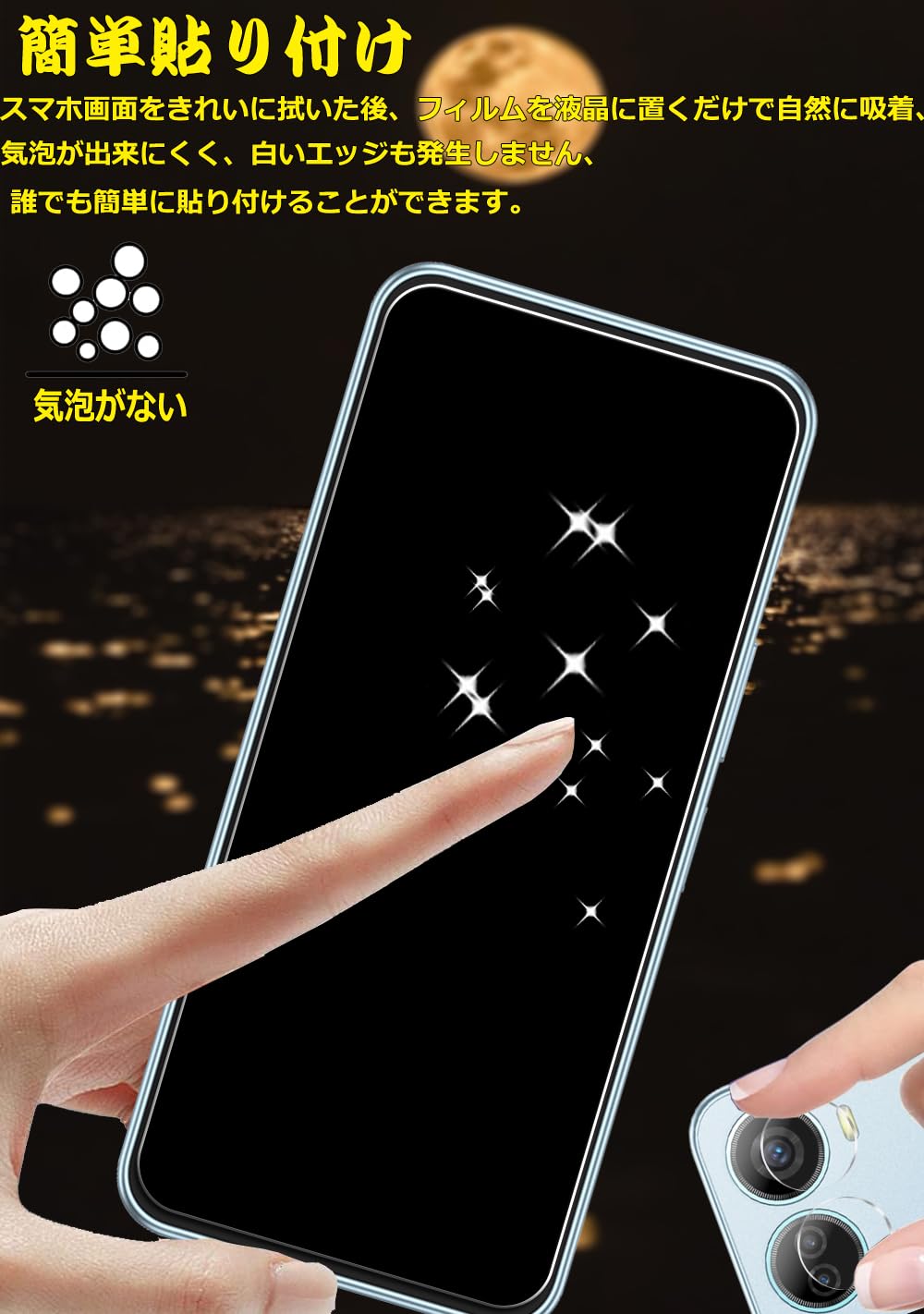 ?【誰でも簡単貼り付け、気泡ゼロ、】保護ガラス 位置合わせ・貼り付けがしやすいように工夫しており、ガラスを液晶に置くだけで自動的に吸着します。気泡も自然に抜けていくので、誰でもきれいに貼ることができます。初心者でも完璧にこなせるため、失敗を心配せずに貼り付けられます。