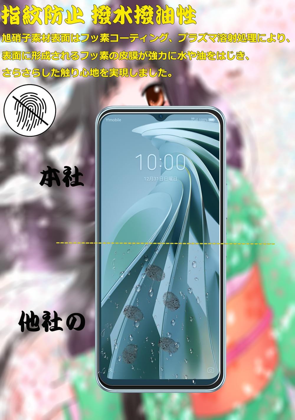 ?【指紋防止・飛散防止】撥油コーティング加工されているため、ホコリや指紋など汚れにくくなっています。付着しても簡単に拭き取れます。ガラスフィルムは飛散防止加工されておりますので、万が一割れの場合でも、破片が飛び散らず張り付いた状態になります。