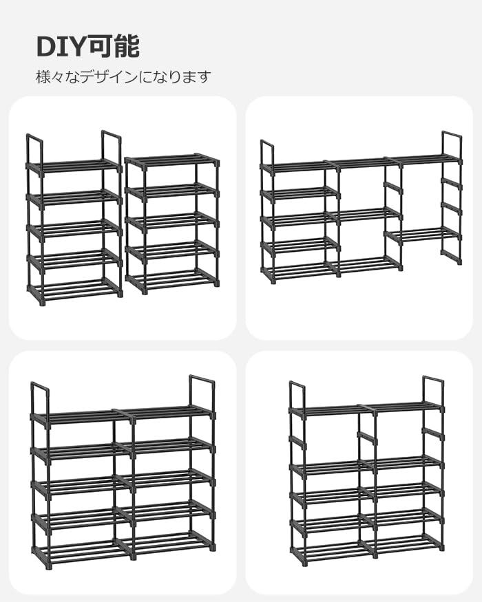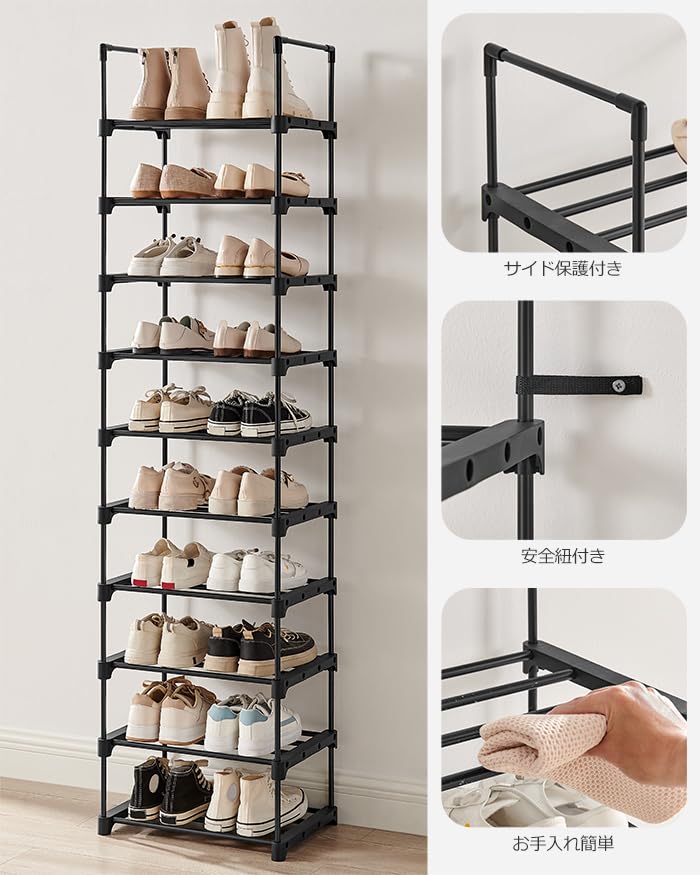 【新着商品】SONGMICS シューズラック 10段 収納 大容量 スリム 靴箱 省スペース分割可 玄関すっきり LSA25BK