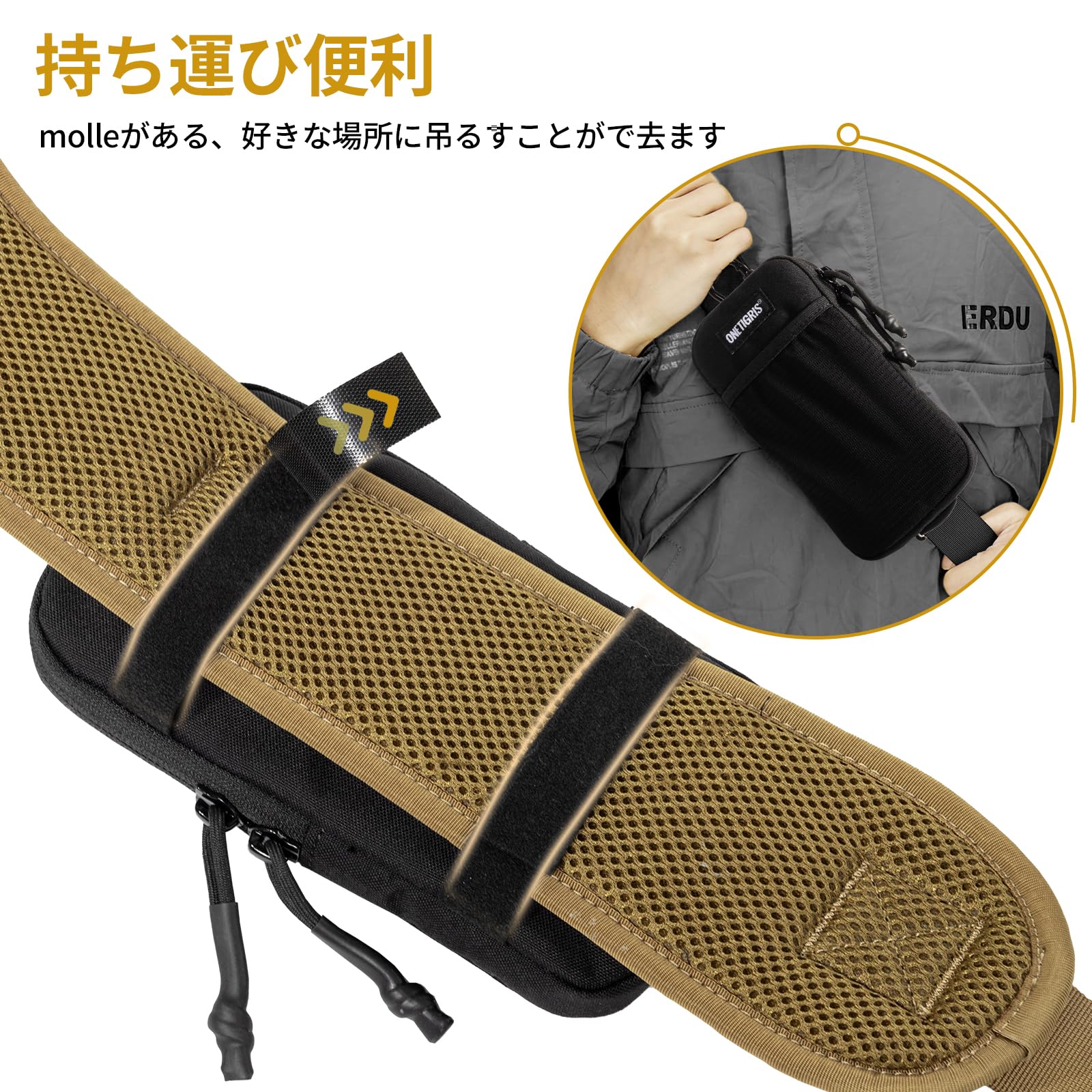 持ち運び便利:スマホぽーちにはカラビナとMOLLEシステムが装備されており、腰や肩紐、バッグに取り付けることができます。アウトドア活動中に簡単に取り出せて非常に便利です。イヤホン収納:イヤホン収納袋があり、コードを出して音楽を聴くことができ、イヤホンを紛失する心配がありません。