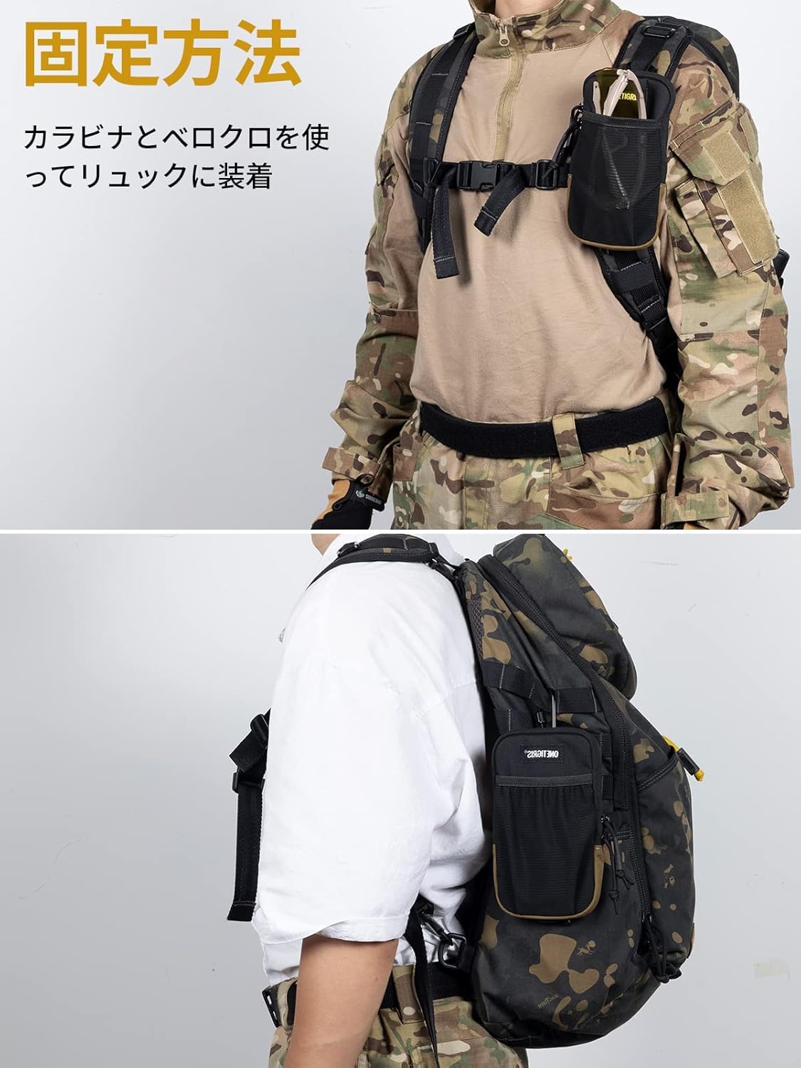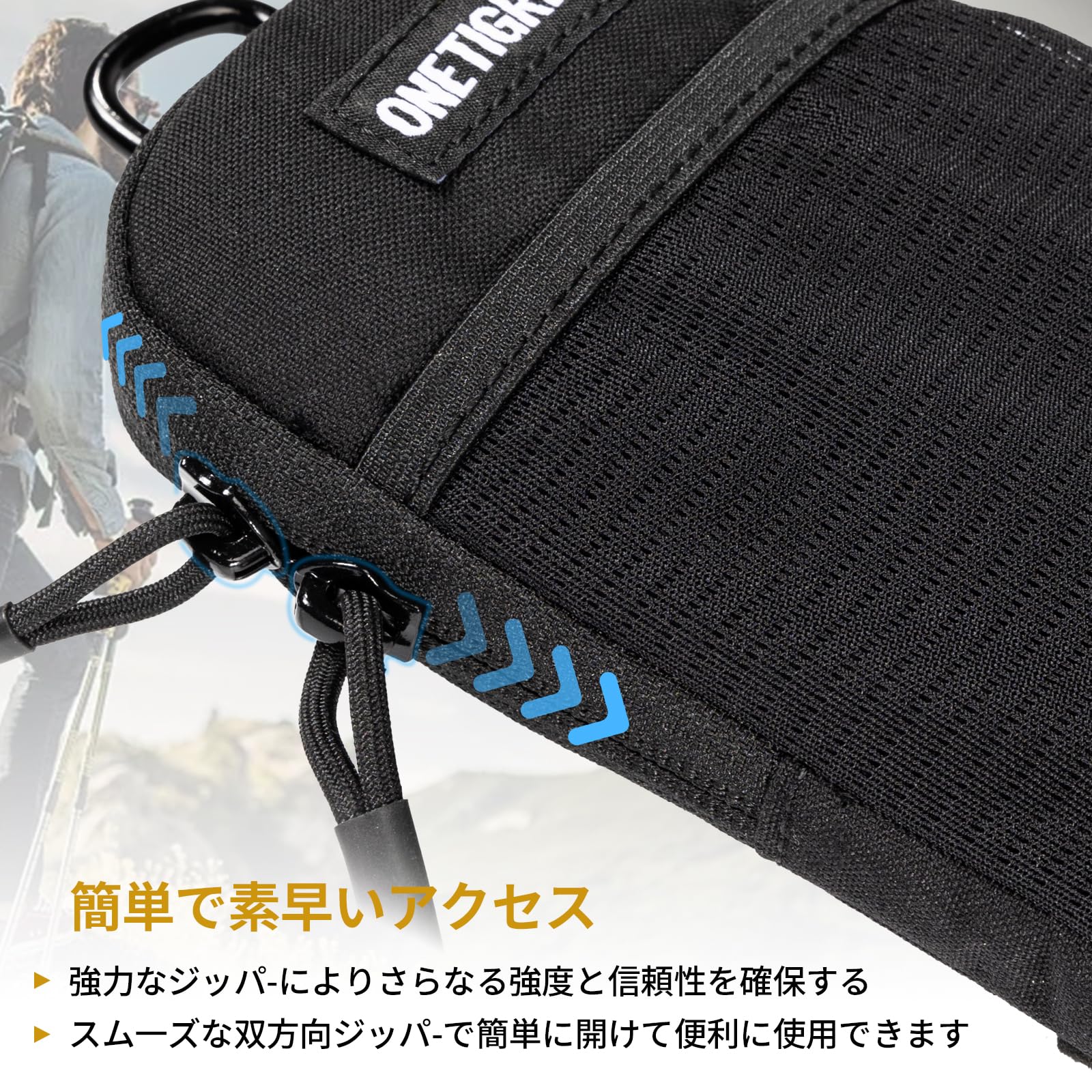 OneTigris スマホポーチ メンズ ベルト リュック 取り付け 携帯ポーチ YKK ファスナー カラビナ moll 付き アウトドア 登山 作業用 iphone 15 14 13 12 plus pro max Sony Galaxy Samsung スマートフォン 対応 黒い