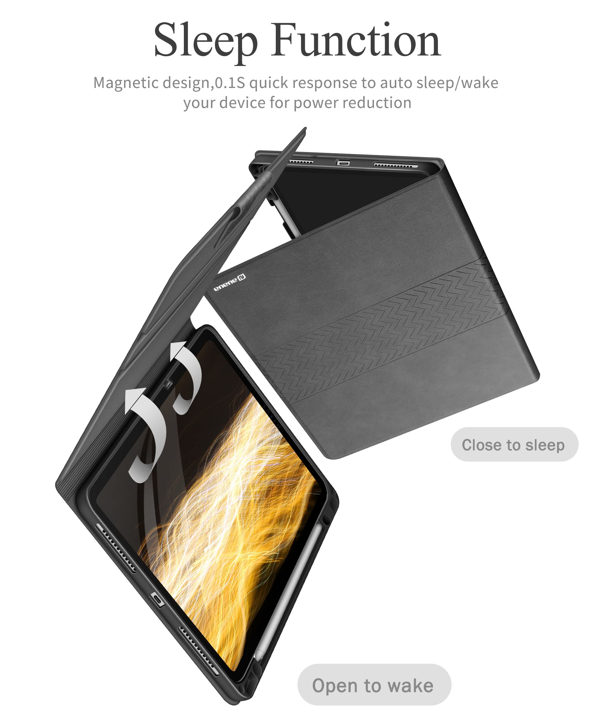 【紛失防止のペンホルダー】iPad pro 12.9 インチ専用のApple Pencilスロットが内蔵されており、これを使えば、ペンをしっかりと保管し紛失を避けることができます。ペンホルダーに入れたままApple Pencilのペアリングとワイヤレス充電を実現できます。注意:①Apple Pencilは付属していません。