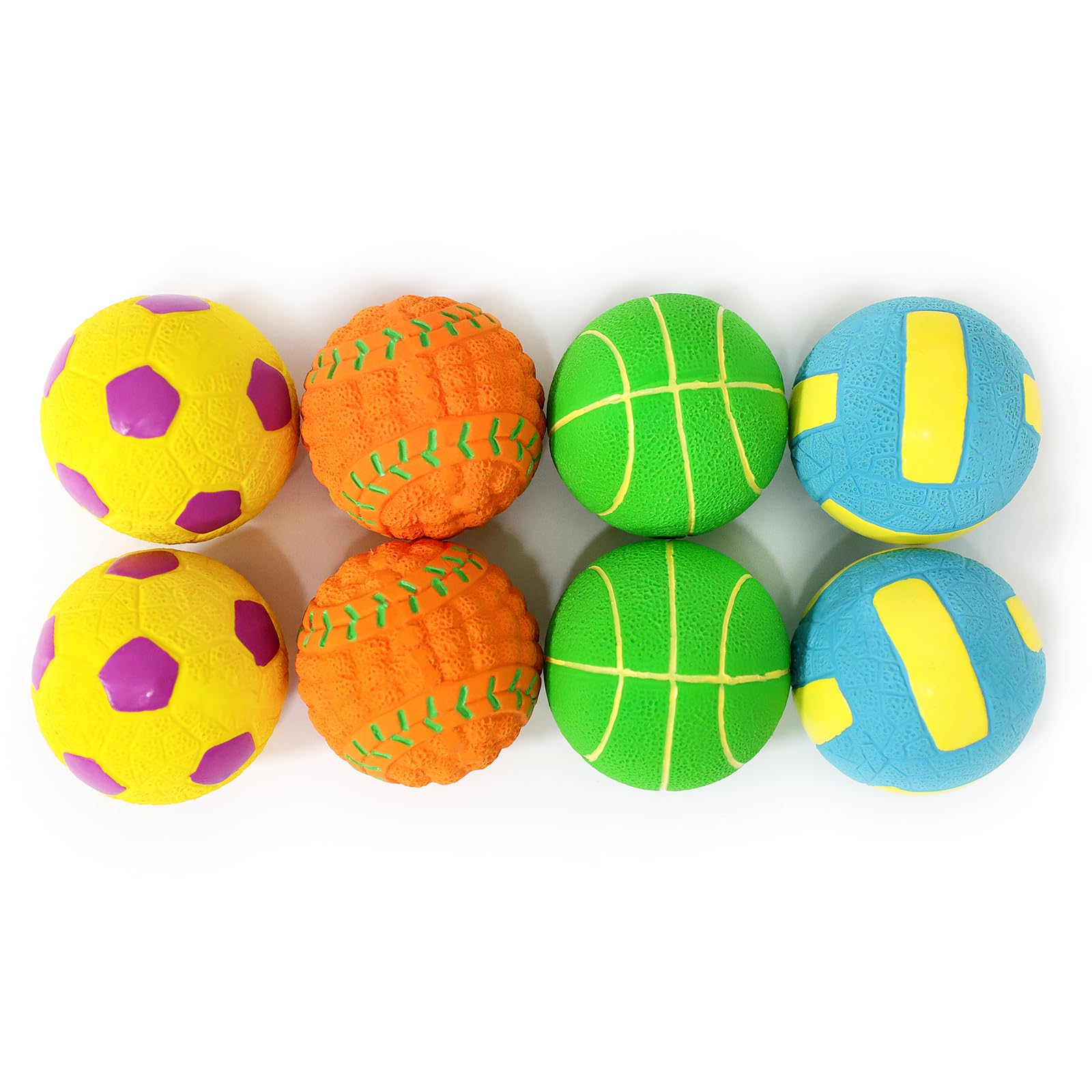 SCHITEC犬 おもちゃ ボール 音の出る 【6cm・8個セット 野球 ・サッカー・バレーボール ・バスケットボール各種2個ずつ】 噛むおもちゃ 歯磨き 丈夫 耐久性 運動不足・ストレス 中型犬・小型犬・子犬に適用