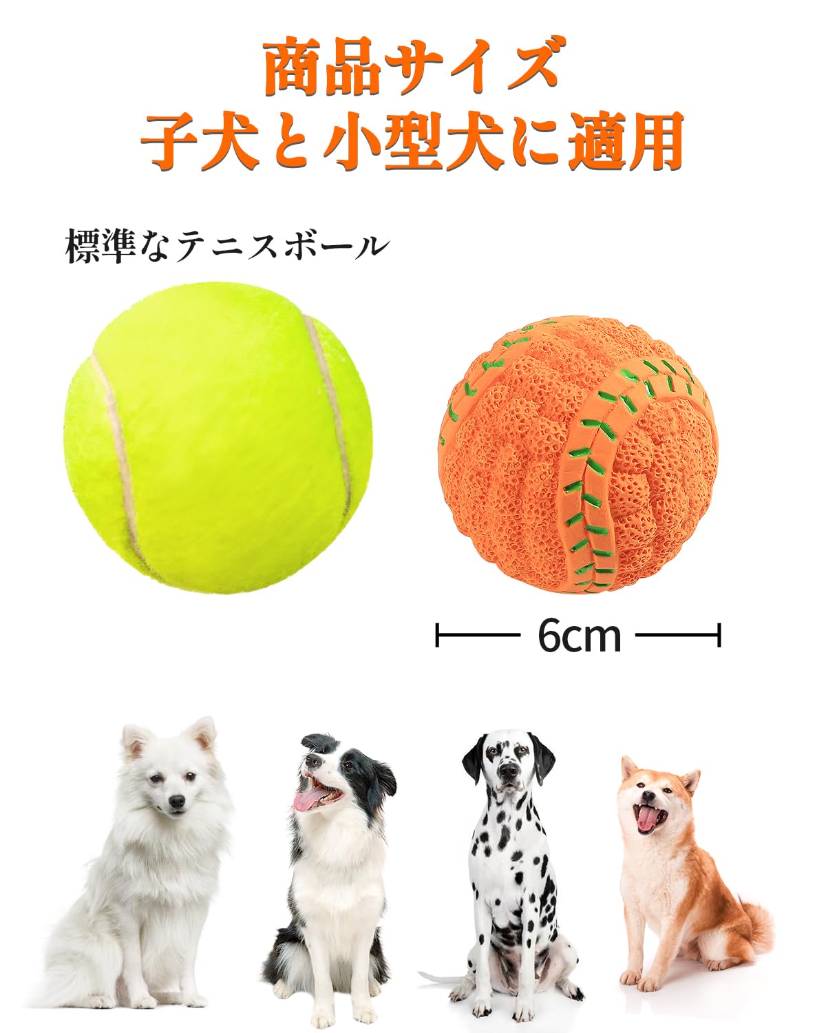 【中型犬・可愛いボール4点セット】:4点セット(4色4ボール)、遊びながら飼い主に表情を知る訓練こともできます。このおもちゃの直径は6cm×6cm×6cmので,子型犬の口の形に適します。子型犬は大活躍します。