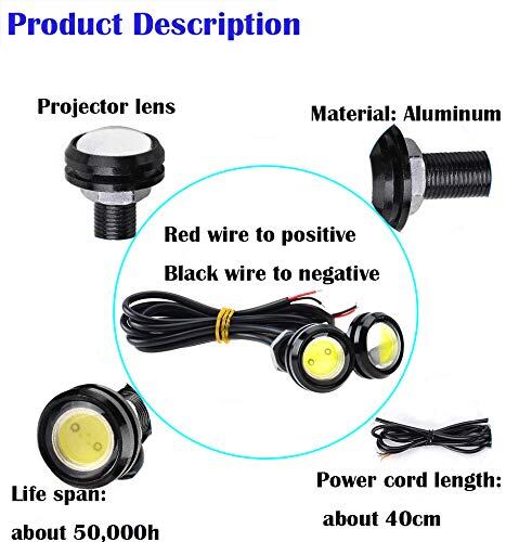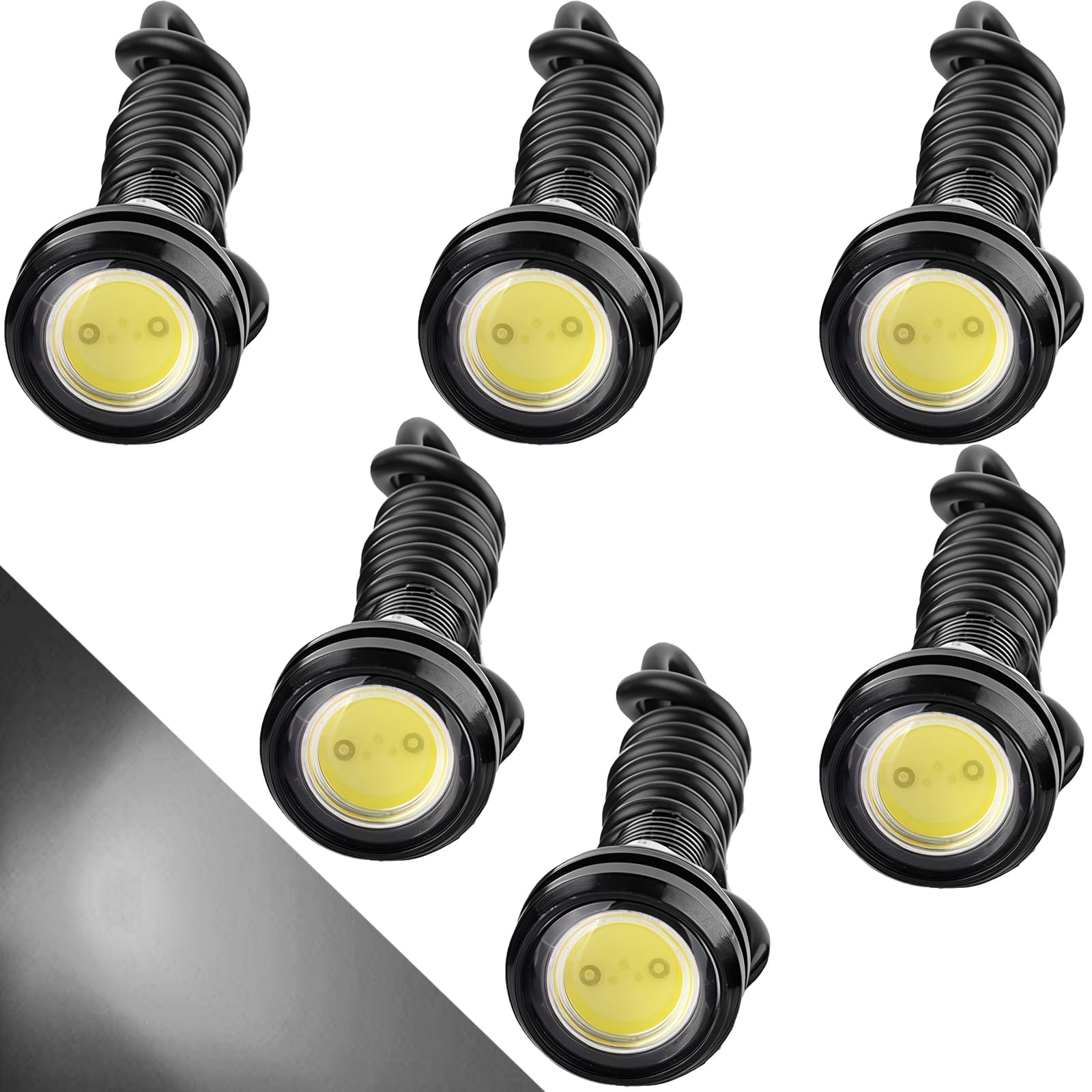 CTRICALVERハイパワー18mm9WイーグルアイLEDライト、カーモーターサイクルDRLデイタイムランニングライトフォグランプ反転ライトマーカーライト12V防水(白、6PCS)