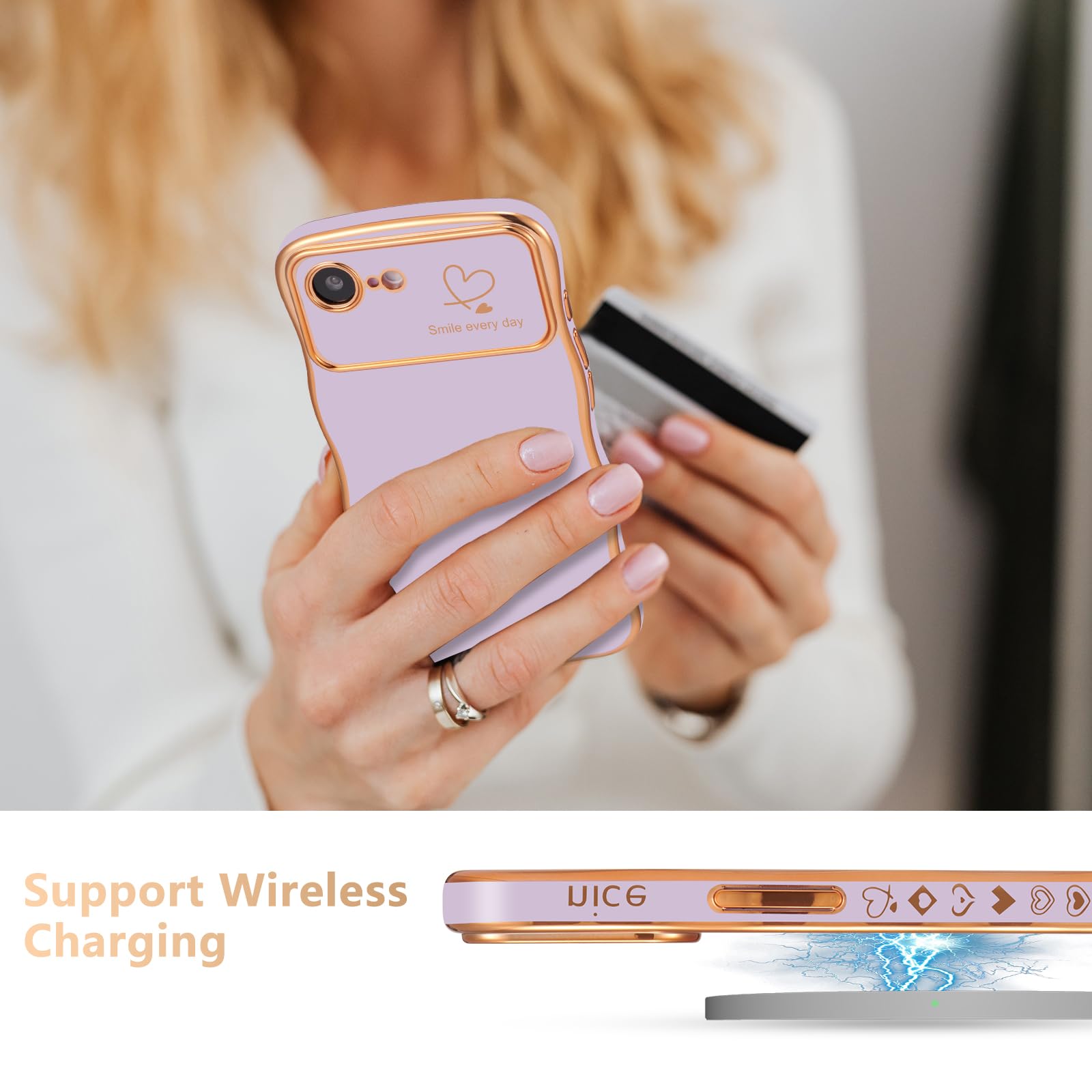 ZTOFERA iPhone 16e 用 ハートケース 人気 おしゃれ アイフォン 16e ウェーブ ケース 柔軟な TPU シリコン いphone 16e スマホケース メッキ加工 ソフト 軽量 耐衝撃 韓国 可愛い iphone16e 携帯電話カバー ワイヤレス充電対応 (パープル)