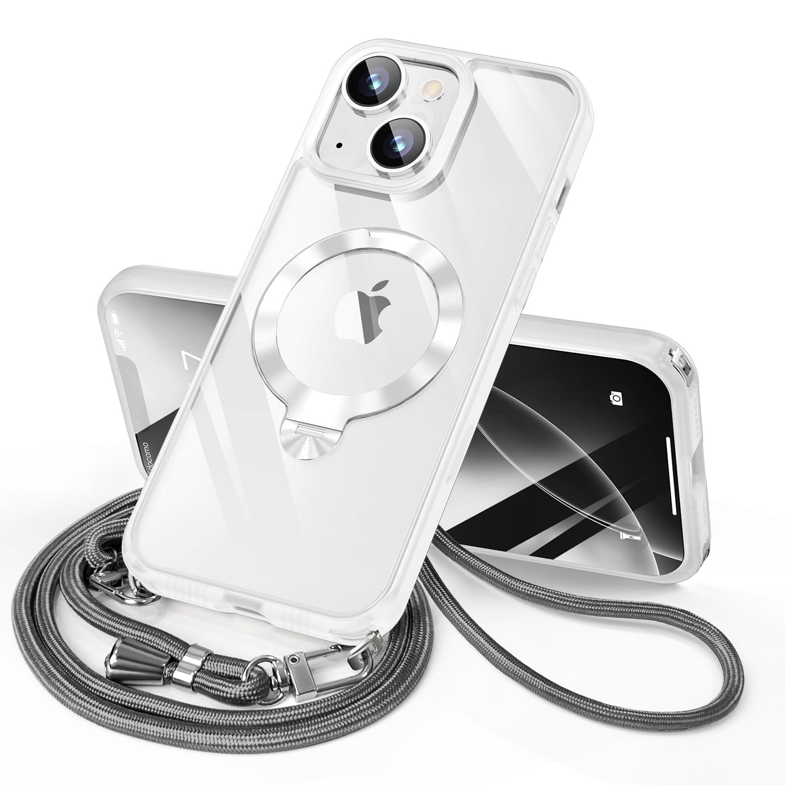 MEIKKS iPhone 13/14 用 ケース メッキデザイン & 特別なCD調スタンド」隠しストラップホール付き 多機能360度回転スタンド MagSafe ワイヤレス充電対応 耐衝撃 カメラレンズ保護 6.1インチ いphone13/14 用 ケース 薄型 透明 PC + 軽量 シリコン TPUバンパー おしゃれ スマホケース (iPhone 13/14クリア)