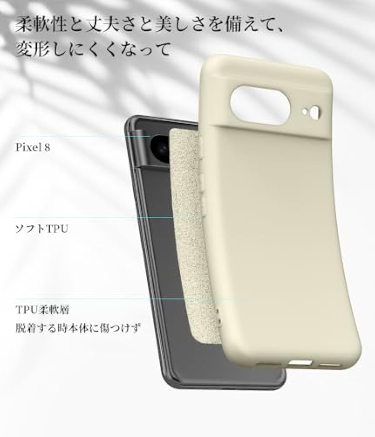 Google Pixel 8 用 ケースシリコン 薄型 tpu スリム 磨り表面 指紋防止 カバー 柔らかい裏地 Pixel 8 用 ケース 耐衝撃 米軍MIL規格 ワイヤレス充電対応ストラップホール付き 黄ばみなし レンズ保護 滑り止め 柔軟性 擦り傷防止 ベージュ N513-Apixel8-13