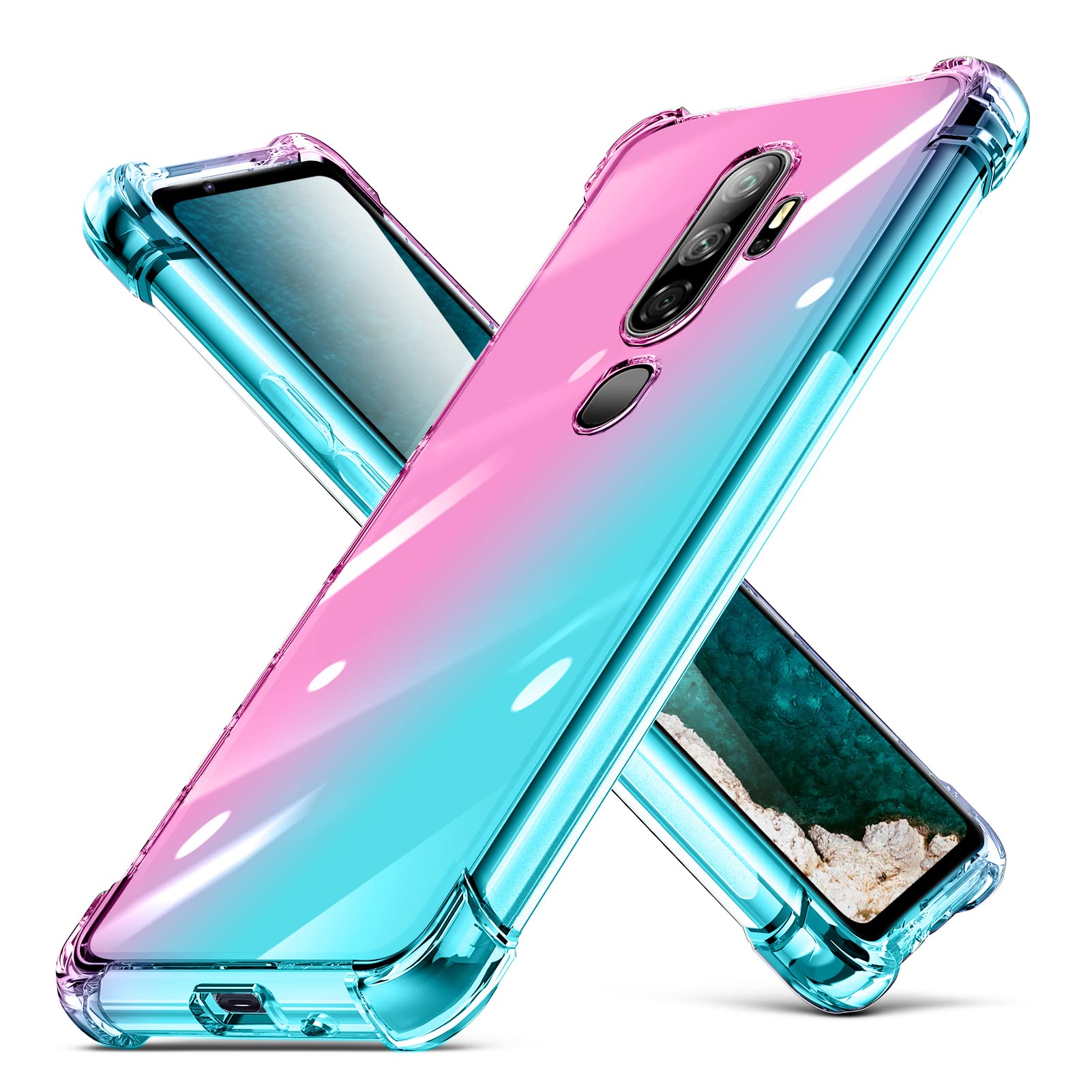 OPPO A5 2020 ケース tpu 耐衝撃 クリア透明 スリム 薄型 シリコン 指紋防止 米軍MIL規格取得 OPPO A5 2020 カバー 衝撃吸収 滑り止め カメラ保護 携帯カバー ワイヤレス 充電対応 おしゃれ 黄変防止 防塵 携帯カバー ピンク+緑D543-A5 2020-05