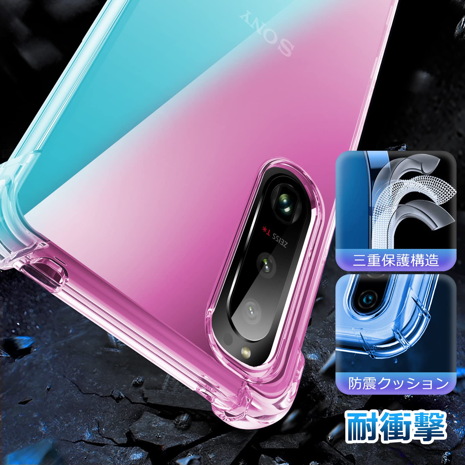 【全面保護】フチが高低差を設計し、液晶画面とカメラレンズをキズから保護します。背面の四隅には突起(リアガード)が設けてあり、机から滑り落ちる心配は全然ない上に、平らな場所においてもケースに直接触れることがなく、レンズも二度と守れます。
