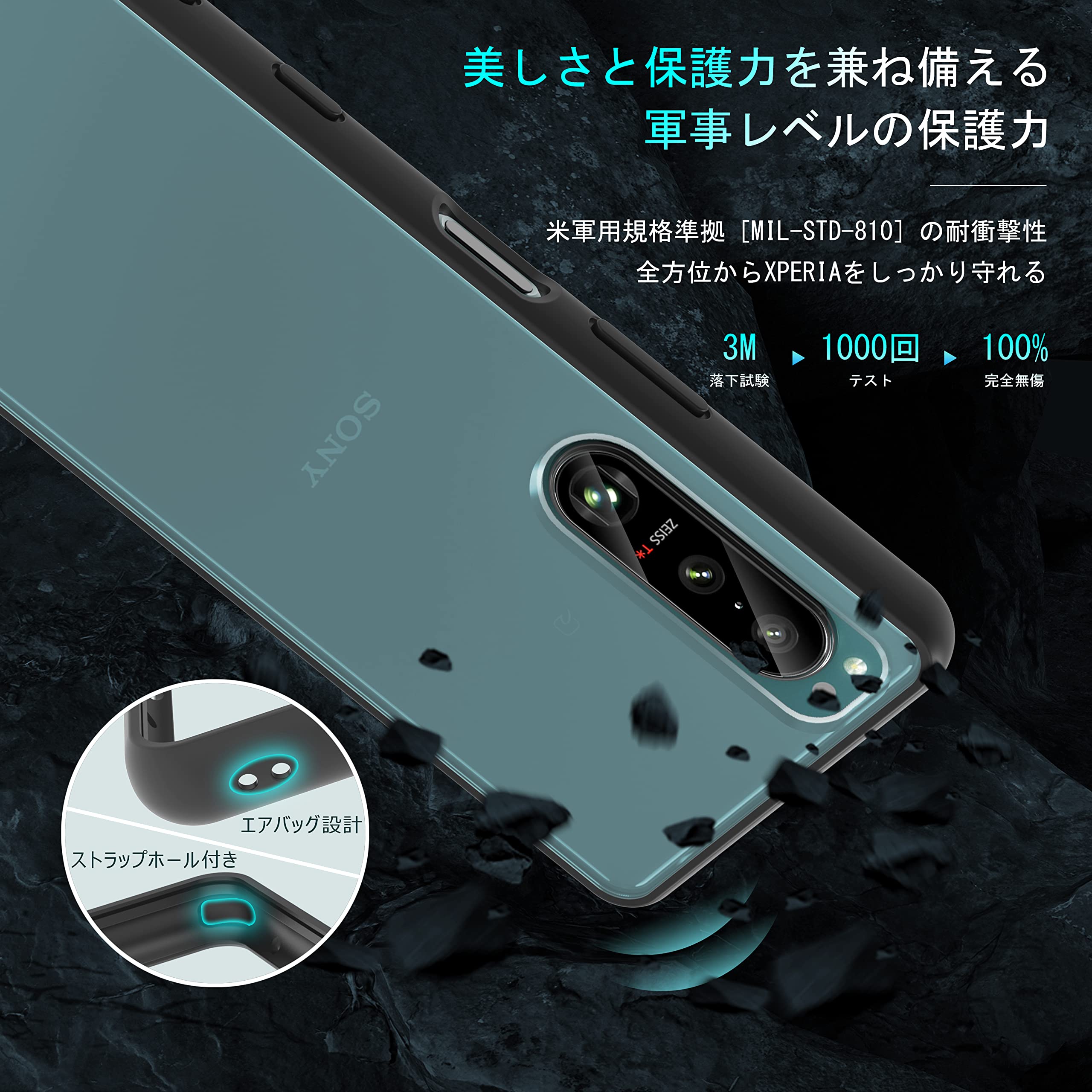 SONY Xperia 5 III 用 ケース 半クリア SO-53B | SOG05 ケース 2021開発型 マット感 米軍MIL規格取得 SGS認証 黄ばみなし レンズ保護 指紋防止 ストラップホール付き エクスペリア5 III 用カバー Mist Series