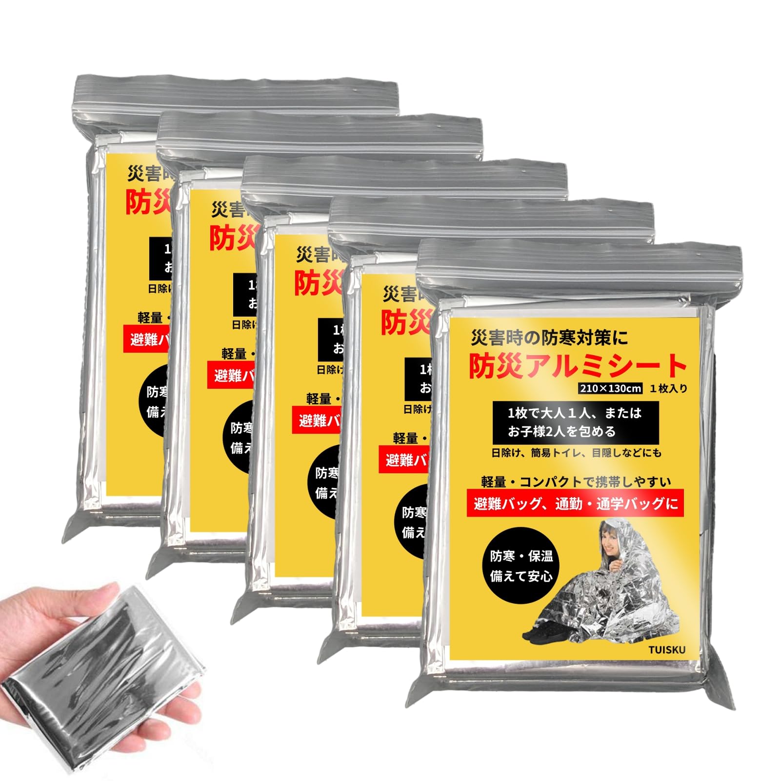 (TUISKU) 防災 アルミシート アルミブランケット サバイバルシート 210×130cm 災害 避難グッズ 折り畳み コンパクト 5枚セット