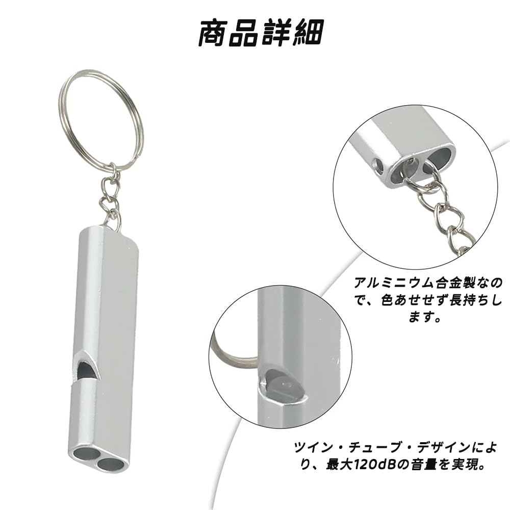1.【キーホルダー付き】各ホイッスルには便利なキーホルダーが付いており、リュック、装備、衣類に簡単に接続できます。これにより、ホイッスルの音が常に手に届き、失われないことがされます。 2.【高声量】これらの非常ホイッスルは非常に大きく、トレッキング、狩猟、キャンプ、釣り、カヌーなどのアウトドア活動に注意を引くのに適している。 3.【材質耐久性】緊急ホイッスルは丈夫なアルミニウムで作られ、信頼性と各種の気象条件と劣悪な環境に耐える能力を確保した。 4.【ポータブル】これらのホイッスルはコンパクトで軽量で、ポケットやリュックに入れやすく、アウトドア探検に使いやすい。 5.【多機能応用】遠足、狩猟、キャンプ、釣り、カヌーなどのアウトドアに適している。