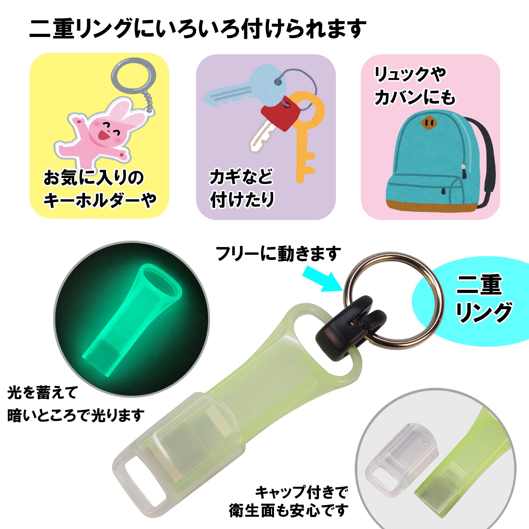 【数量限定】[monoハウス] セーフティ ホイッスル キーリング【蓄光・キャップ付で安心!】 日本製 (1は1個、2は2個、5は5個セットです)