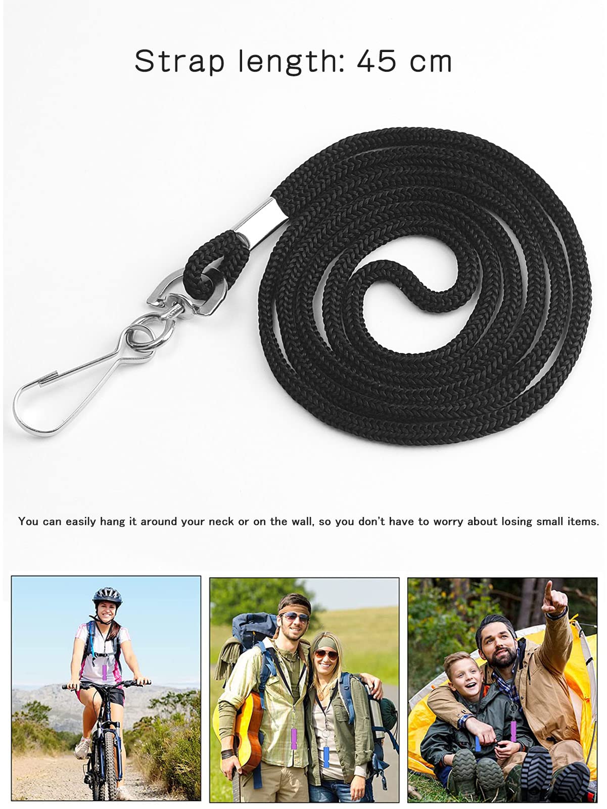 【持ち運び便利】このアルミ製のホイッスルは小さくてキーホルダー或いはストラップに掛けて持ち運び便利です。付属のネックストラップで首から下げても軽くて疲れません。