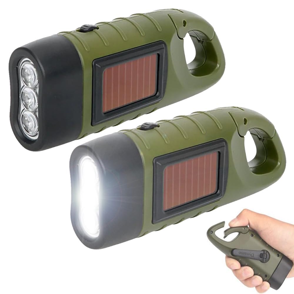 2個セット 手回し充電ライト LED懐中電灯 手回し充電 ソーラー充電 小型 乾電池不要 ハンディライト ソーラー充電 軽量小型 緊急対策 ハンディライト フック付き 携帯便利 キャンプ ハイキング アウトド 登山 台風 地震 津波 停電対策 非常用 高輝度LED 避難グッズ 緊急ライト (グリーン)