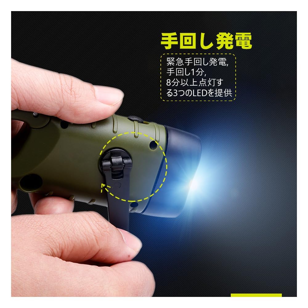 備えておくと安心なライト:停電時や電池のない時に便利な手回し発電式の懐中電灯です。 ハンドルを回して手動発電できるので、緊急時や災害時にもご使用できます。一部屋に1台あると安心です。