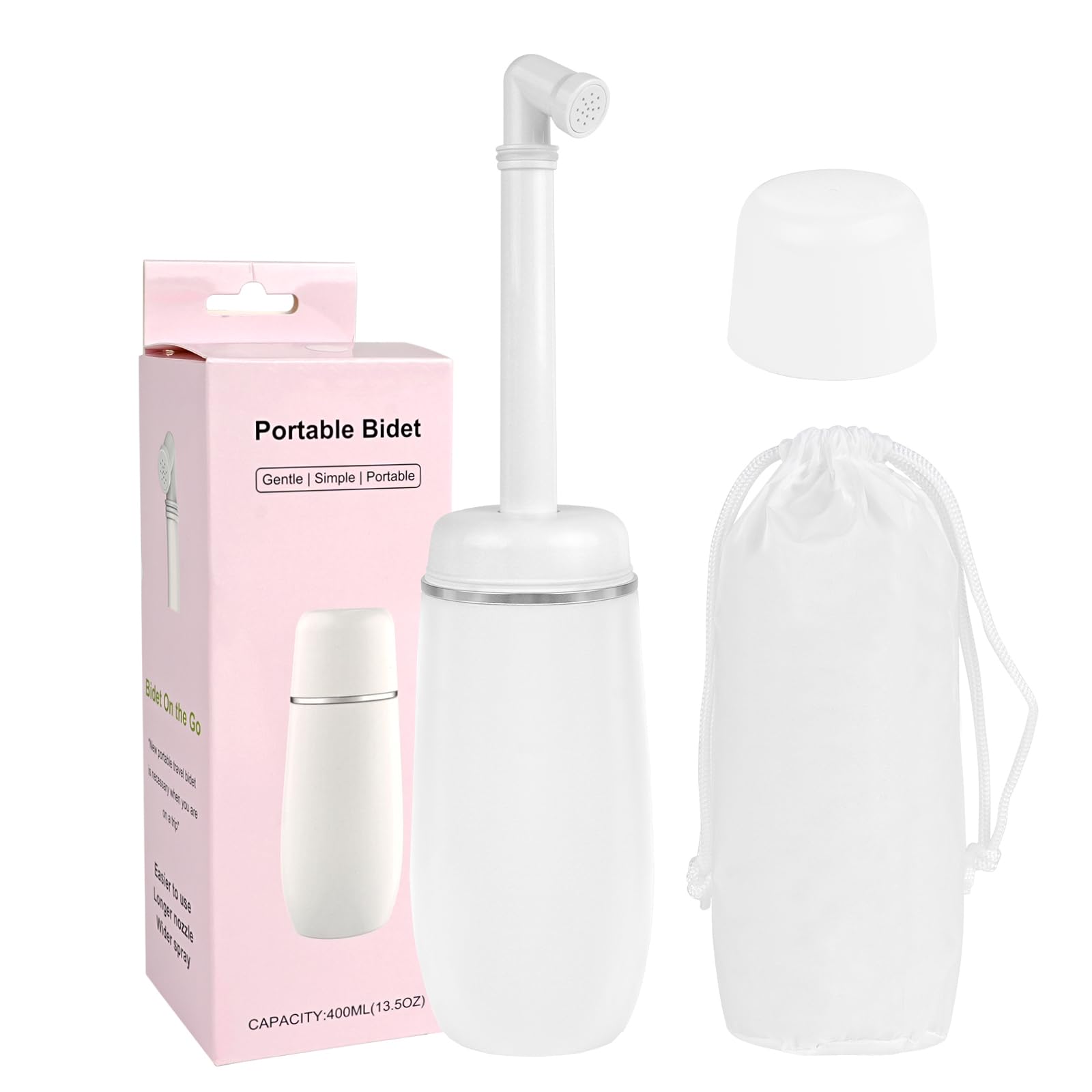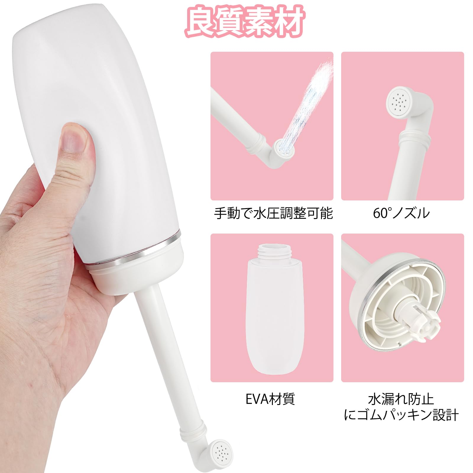 【数量限定】voocye 携帯ウォシュレット 手動 おしり洗浄器 携帯ビデ 400ml 大容量 軽量 携帯温水洗浄器 旅行 キャンプ オムツ 介護 衛生ケア用 防水収納袋付き (ホワイト)