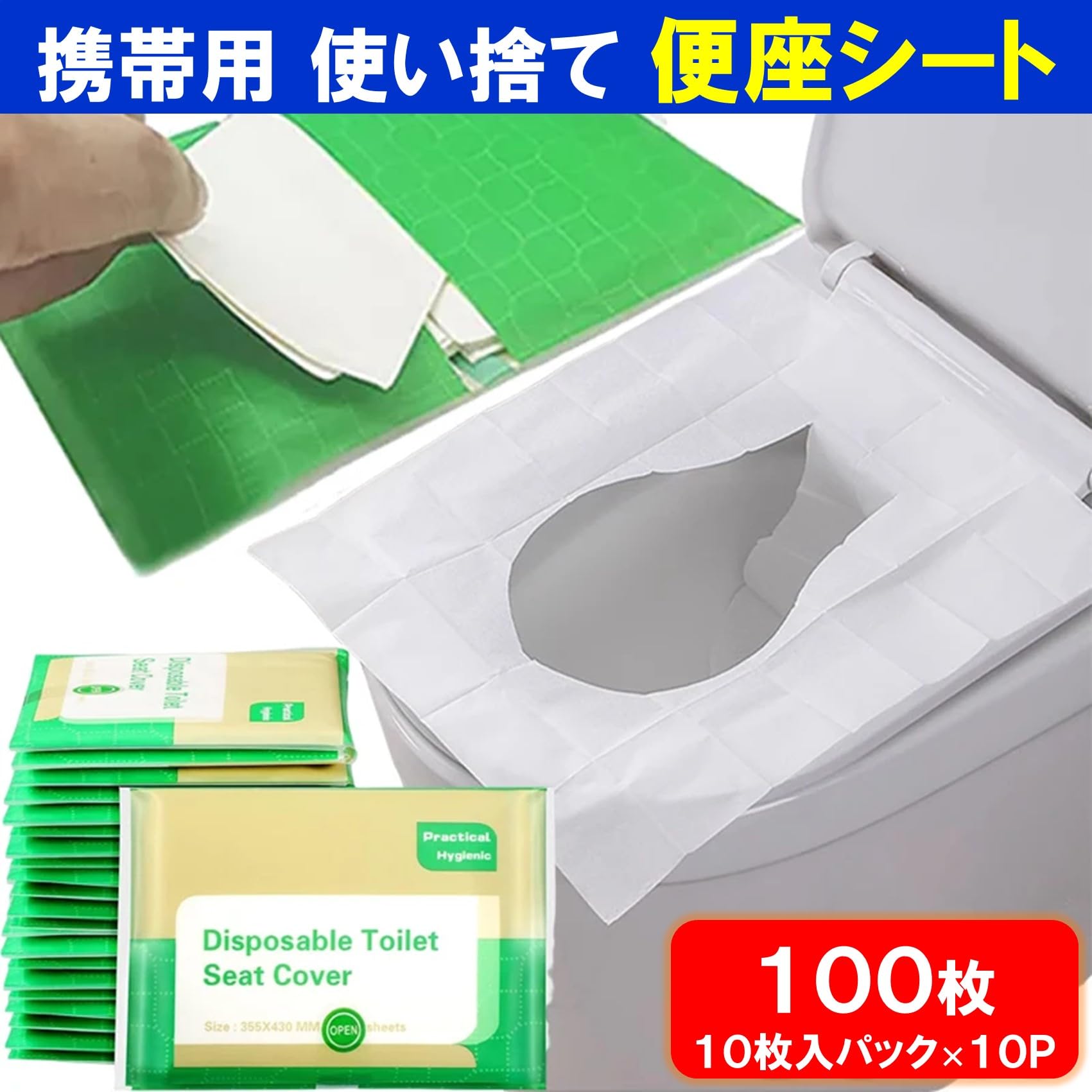 使い捨て便座シート100枚セットです。公衆、共有トイレの不衛生な状態に困惑した経験は誰にでもあると思います。便座シートをポケットティッシュサイズのパックからサッと取り出して便座に広げるだけで衛生的にトイレを利用することができます。使用後は水に流すだけで手間がかかりません。10枚入りパック×10パック(100枚)の大容量でお届けします。