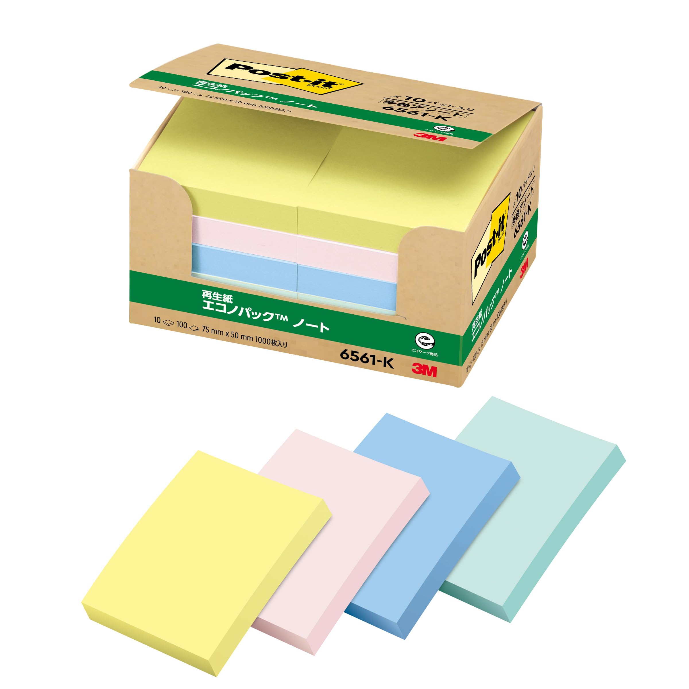【数量限定】ポストイット 付箋 ノート パステルカラー 75×50mm 100枚×10パッド 6561-K