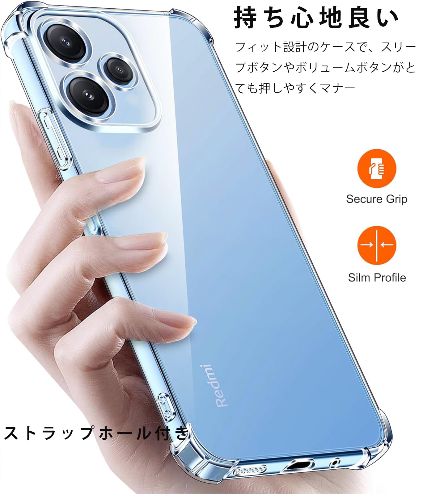 【高い透明度】 透明度が高く、鮮やかな色をそのまま映し出すことができ、 本体のオリジナルのカラーを損ねません。ケースの端はダイヤモンドカットプロセスを施すことでより洗練された美しい外観となっています。Xiaomi Redmi 12 5G の美しさはそのままに、保護しているのです。