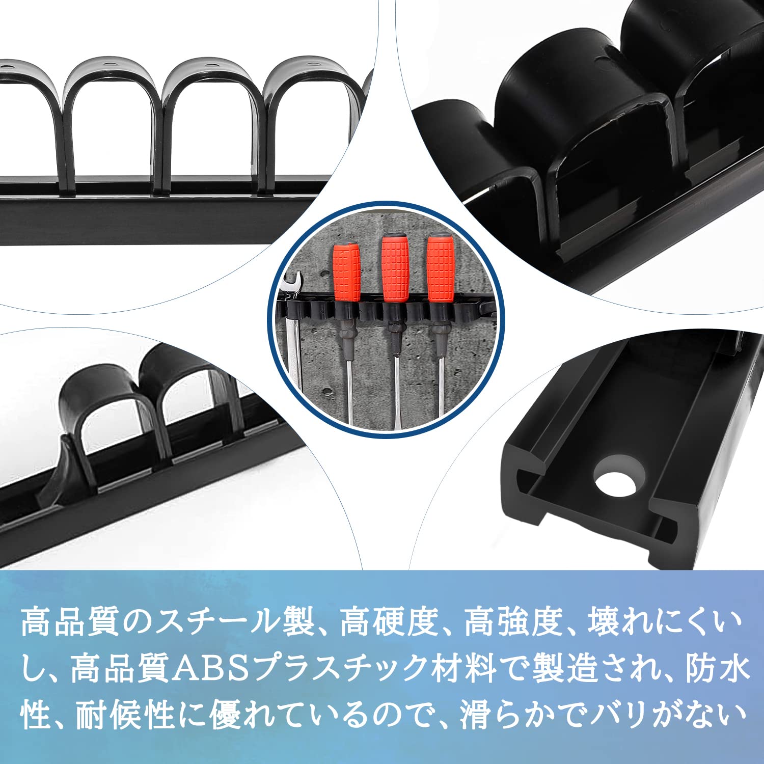 【色々な場所で大活躍】どんどん増えていく工具箱の中身の整理に便利なツールホルダーは、スクリュードライバー、スパナ、エクステンション、プライヤー、ペンチ、ニッパーなど小さな工具を整理し簡単にアクセスできます。また、地下室、オフィス、倉庫、ガレージの壁、キッチンなど。必要とする場所どこにでもツールオーガナイザーを取り付けることができます。省スペースで、引っ掛けも取り出しも便利です。
