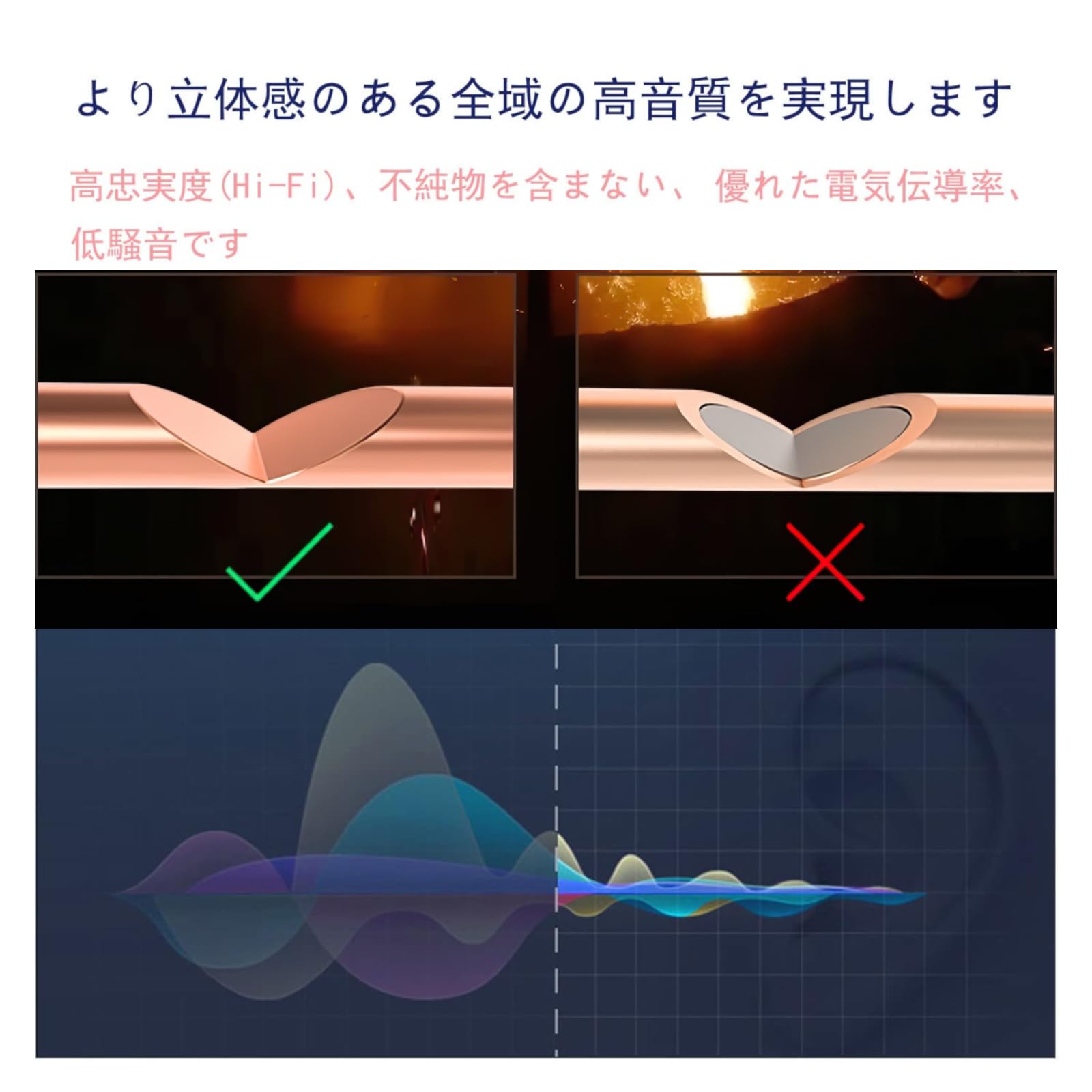 【高品質】高純度無酸素銅線を採用し、高速で安定した信号と素晴らしい音質をします。また、柔らかく断線しにくく、滑り止め、耐油性、耐腐食性に優れています