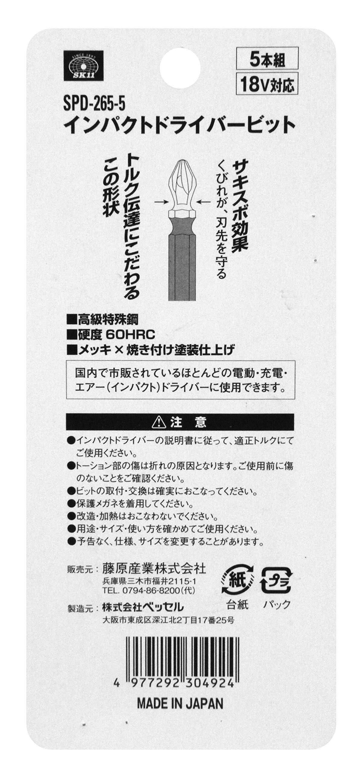 SK11(エスケー11) SPIDER 六角軸 ドライバービット 日本製 SPD-265-5 +2x65mm 18V対応 マグネット付 5個入