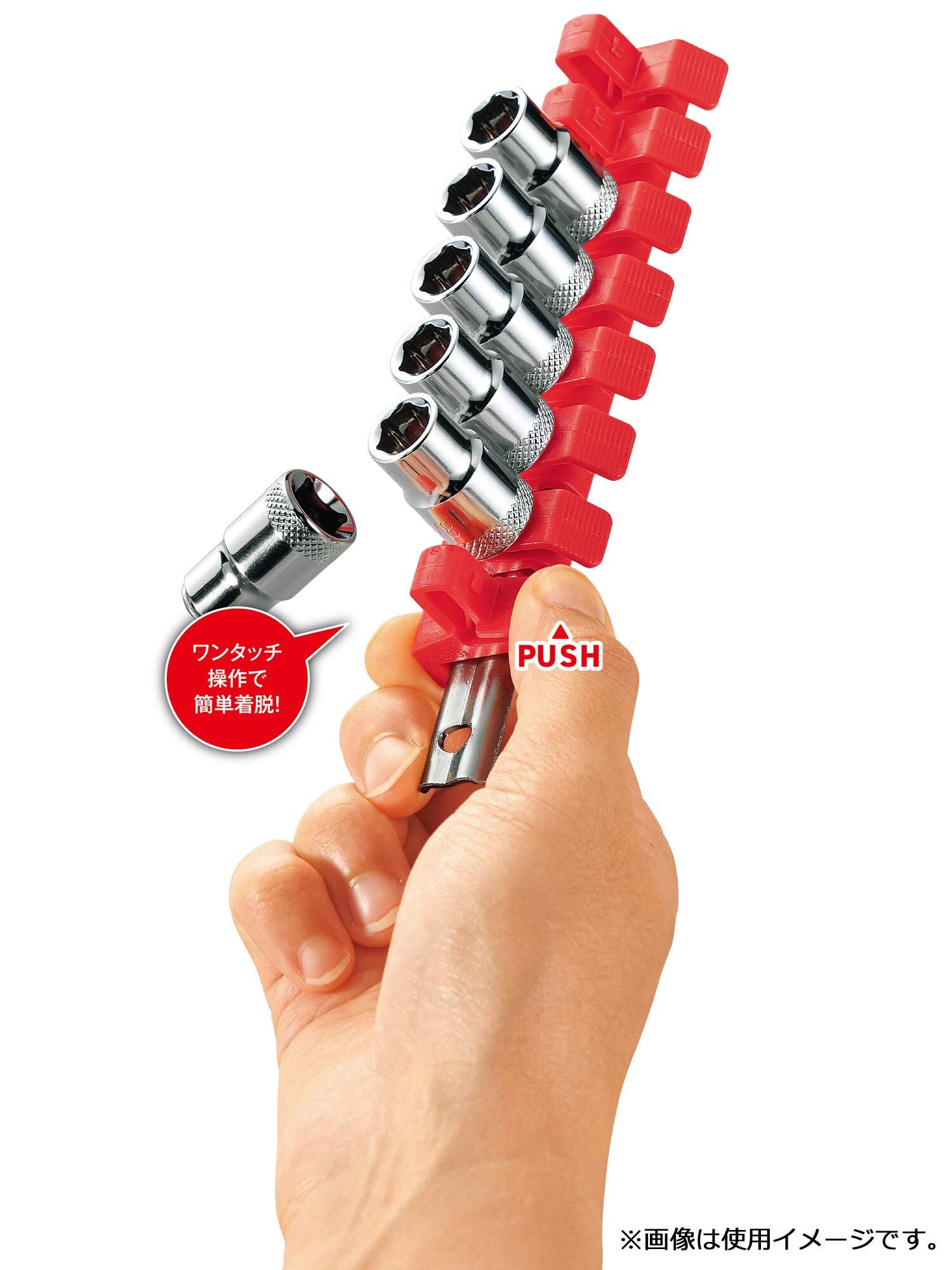 セット内容:ソケット(9.5mm角):5/16・3/8・7/16・1/2・9/16・5/8・11/16・3/4×各1、ホルダー×8、レール×1