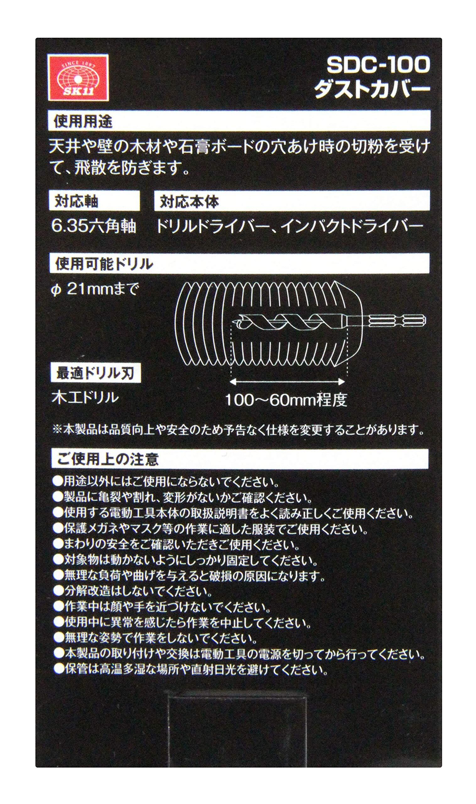 SK11(エスケー11) ダストカバー 粉塵用 SDC-100 日本製 ドリル 穴あけ