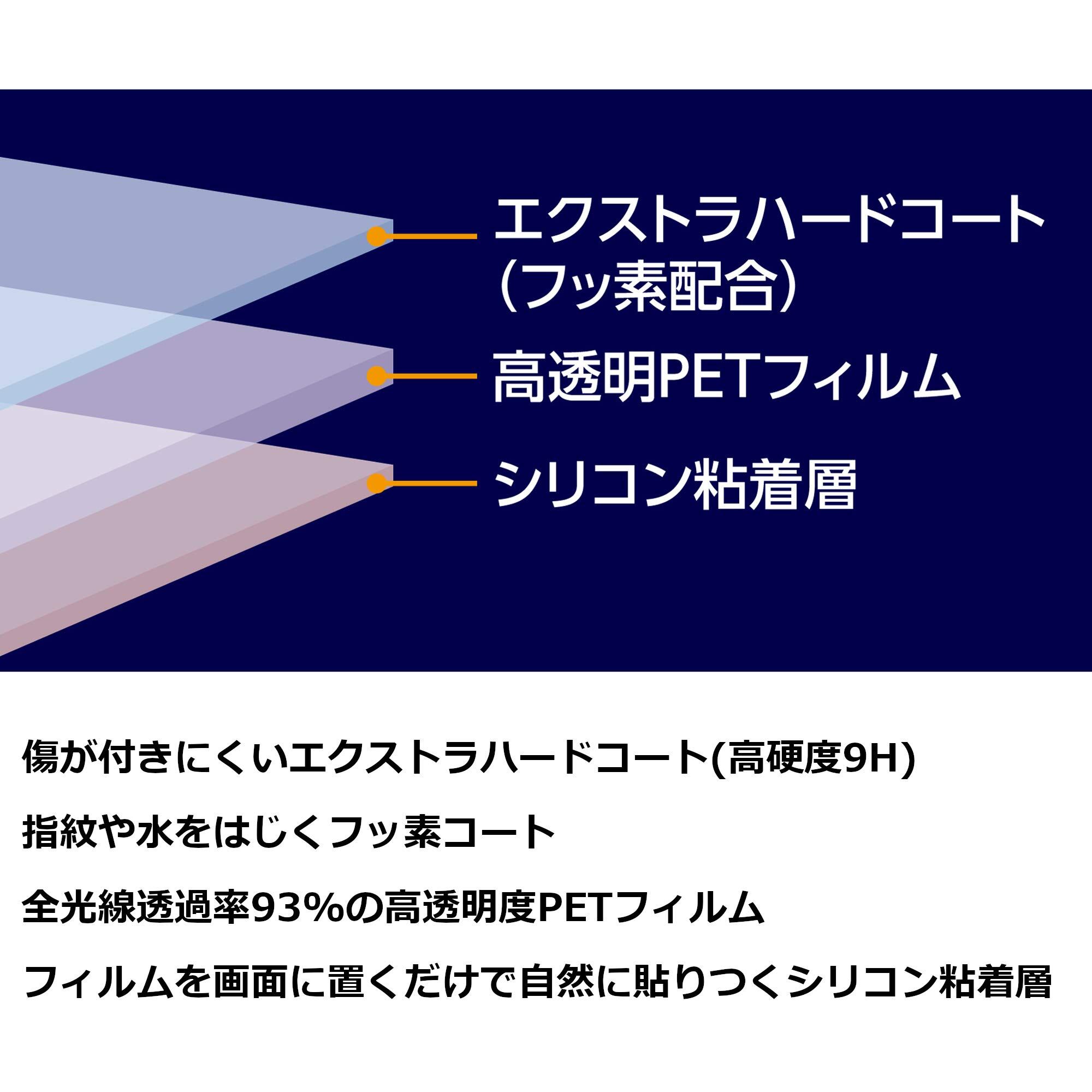 ガラスのような透明度と硬度をフィルムで実現。全光線透過率93%の高い透明度、傷が付きにくいエクストラハードコート(高硬度9H)。