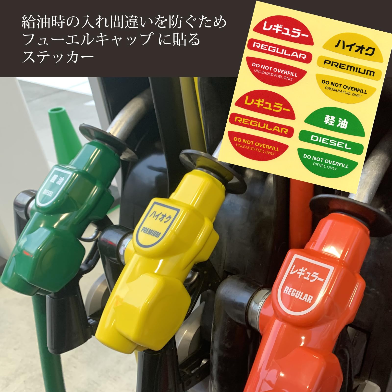 【特価セール】Sin. フューエルキャップ ステッカー 4種セット 給油時の入れ間違い防止 レギュラー ハイオク 軽油 ディーゼル 給油口キャップ 燃料表示シール