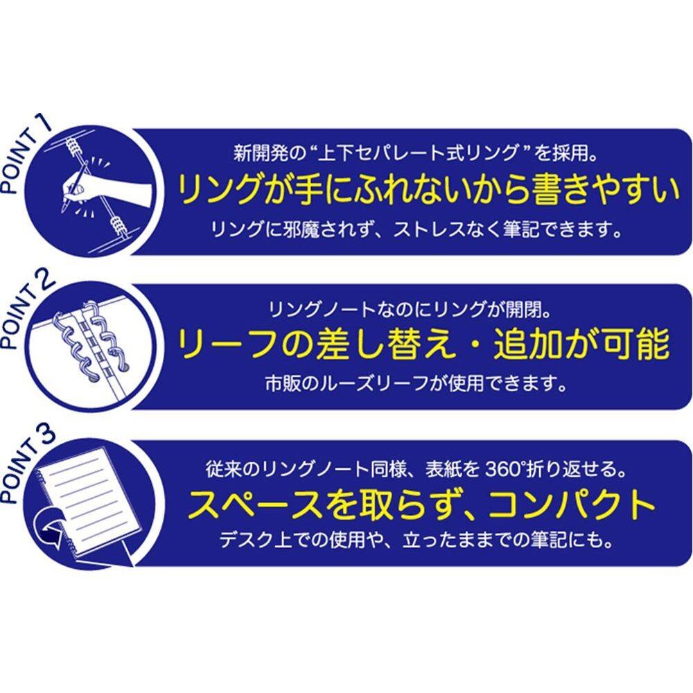 上下にセパレートしたリングで、書くときにリングが邪魔にならないリングノート。