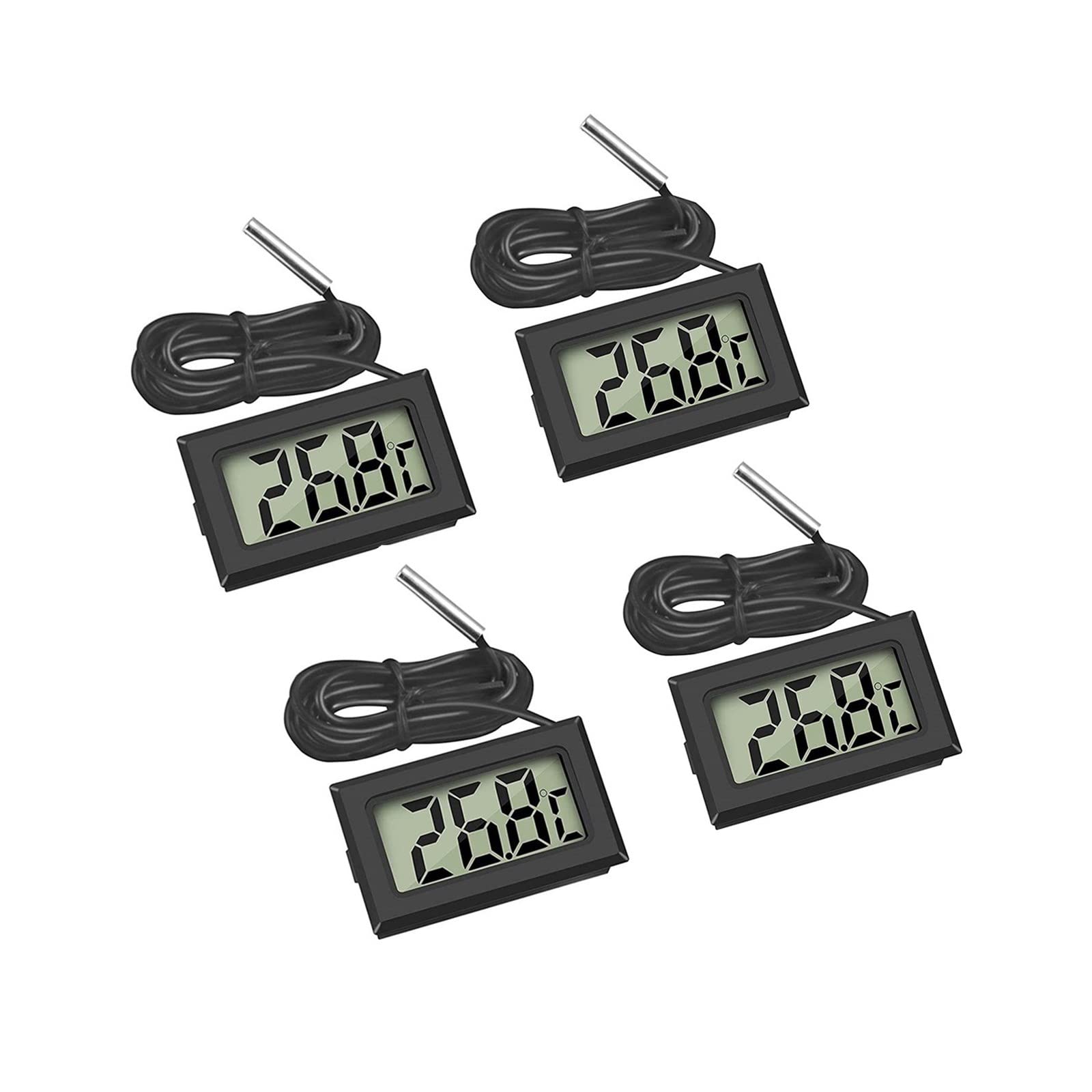 YFFSFDC デジタルLCD温度計 温度計-50℃〜110℃ プローブ付き 爬虫類テラリウム魚タンク冷蔵庫用 水槽 水温管理 水族館温度計 (ブラック 4個セット)