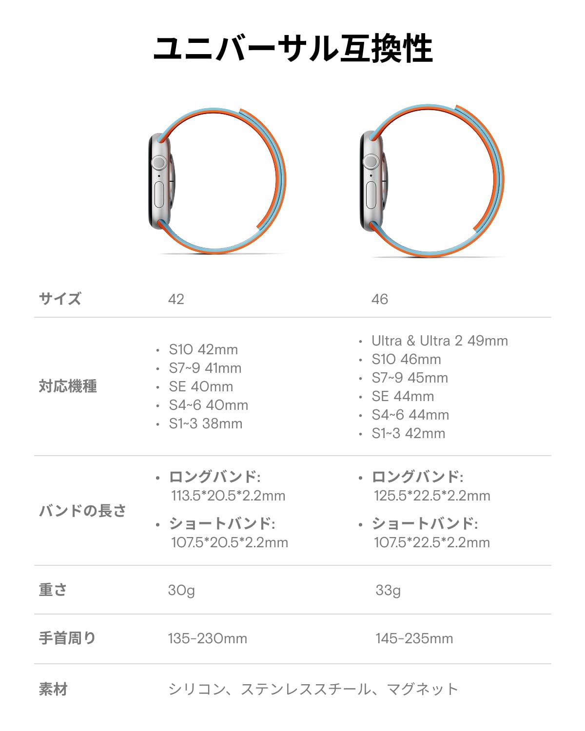 【素早く着脱&無段階のサイズ調整】従来のバックル式バンドとは異なり、このApple Watch用バンドは強力マグネットを搭載し、しっかりと装着でき、無段階のサイズ調整で瞬時にぴったりフィット!そして、付属のマグネット式留め具と組み合わせることで、普段の活動はもちろん、激しい運動中でも外れる心配はありません。通勤、ジム、パーティーなど、あらゆるシーンで素早く付け替えができます。