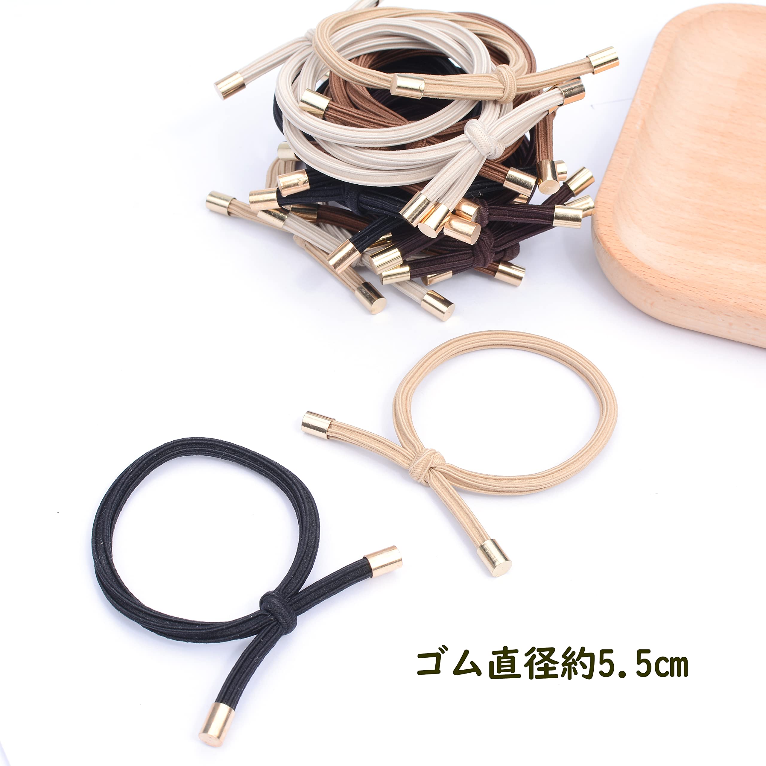 ゴムの先端のゴールドキャップが大人っぽく、きちんとした印象です。