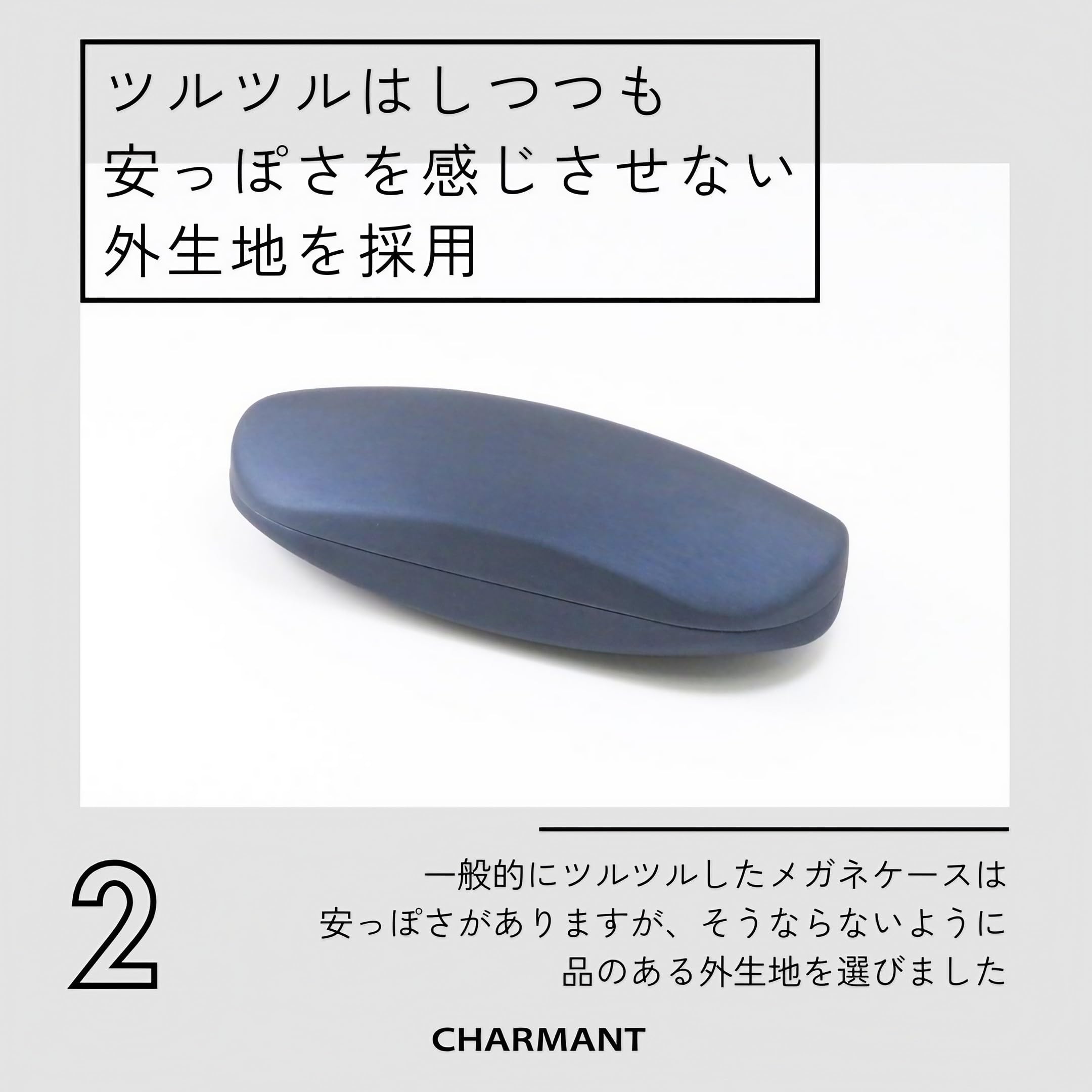 【ツルツルはしつつも安っぽさを感じさせない外生地を採用】 一般的にツルツルしたメガネケースは安っぽさがありますが、そうならないように品のある外生地を選びました。