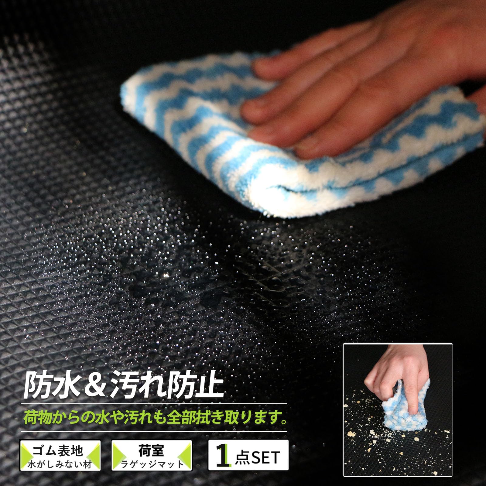 【セット内容】ラゲッジマット*1本。(ゴム生地なので、人によって若干異臭がすることがありますが、二三日の干したら、匂いがなくなります)。