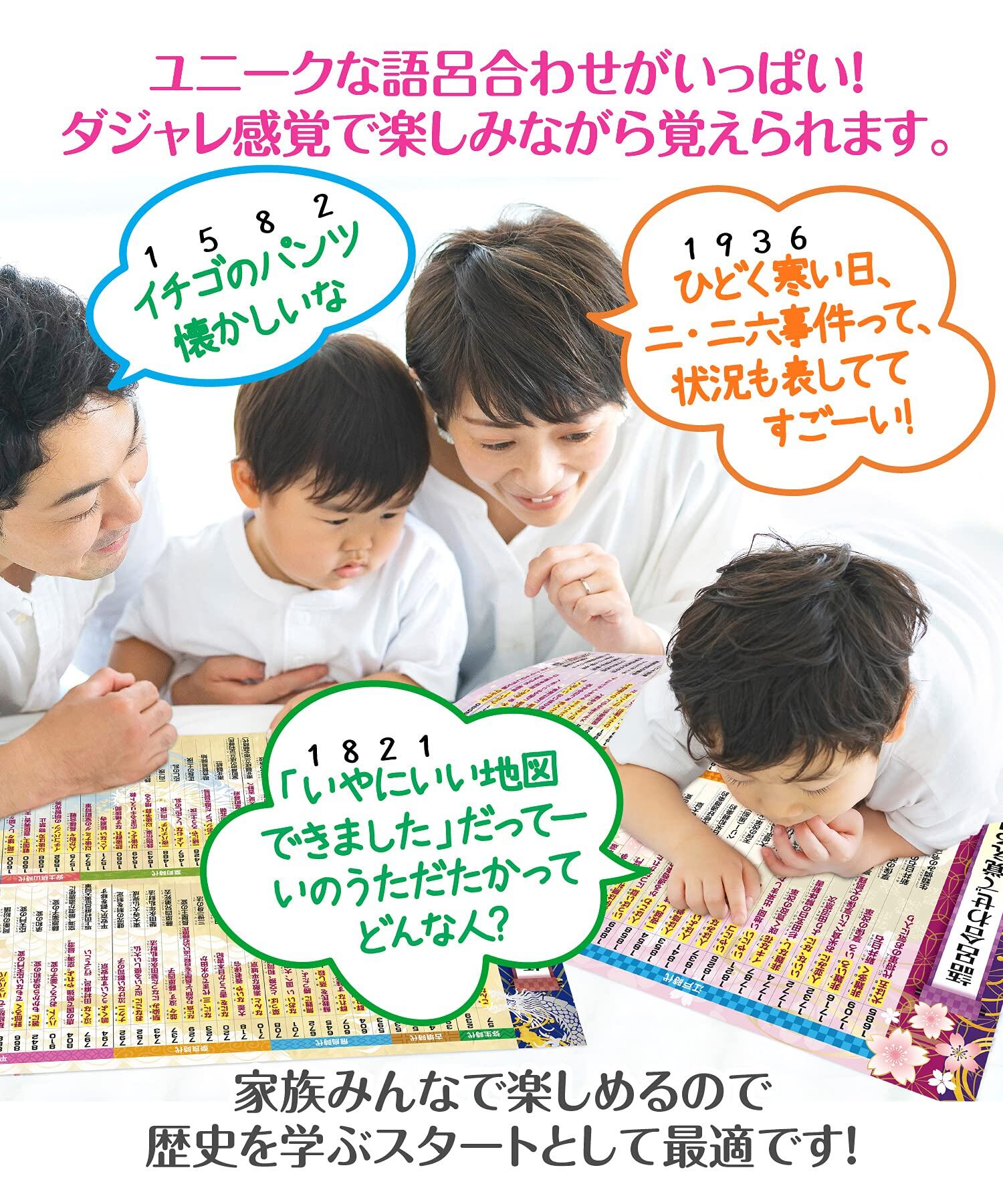 お風呂の学校 語呂合わせで覚える日本史 年表(年号)お風呂ポスター 2枚セット 日本製 和柄デザイン 歴史 社会 受験 知育 学習 防水 B3サイズ